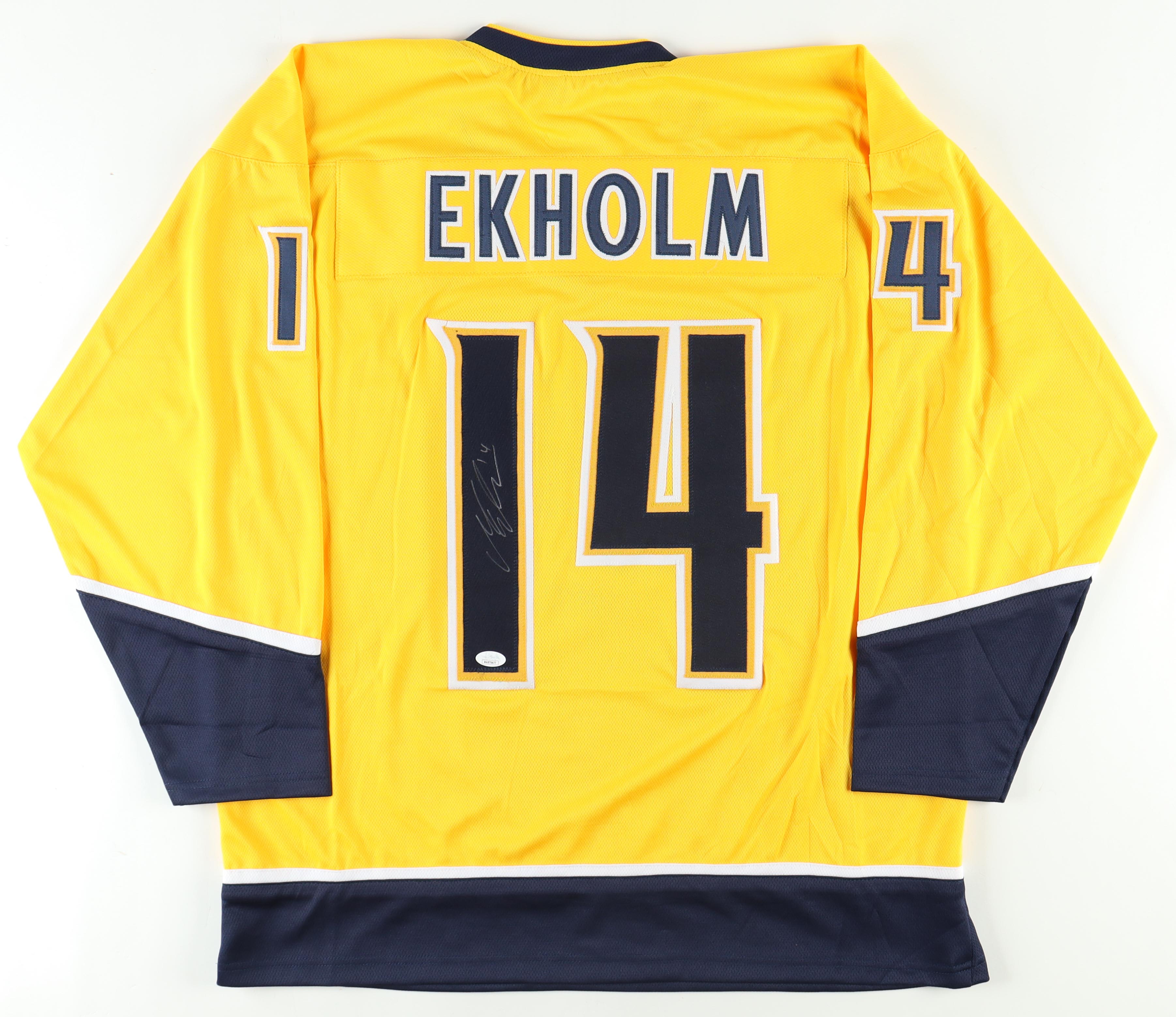 Custom jersey with everything sewn on, size XL. Hand-signed twice by Mattias Ekholm.