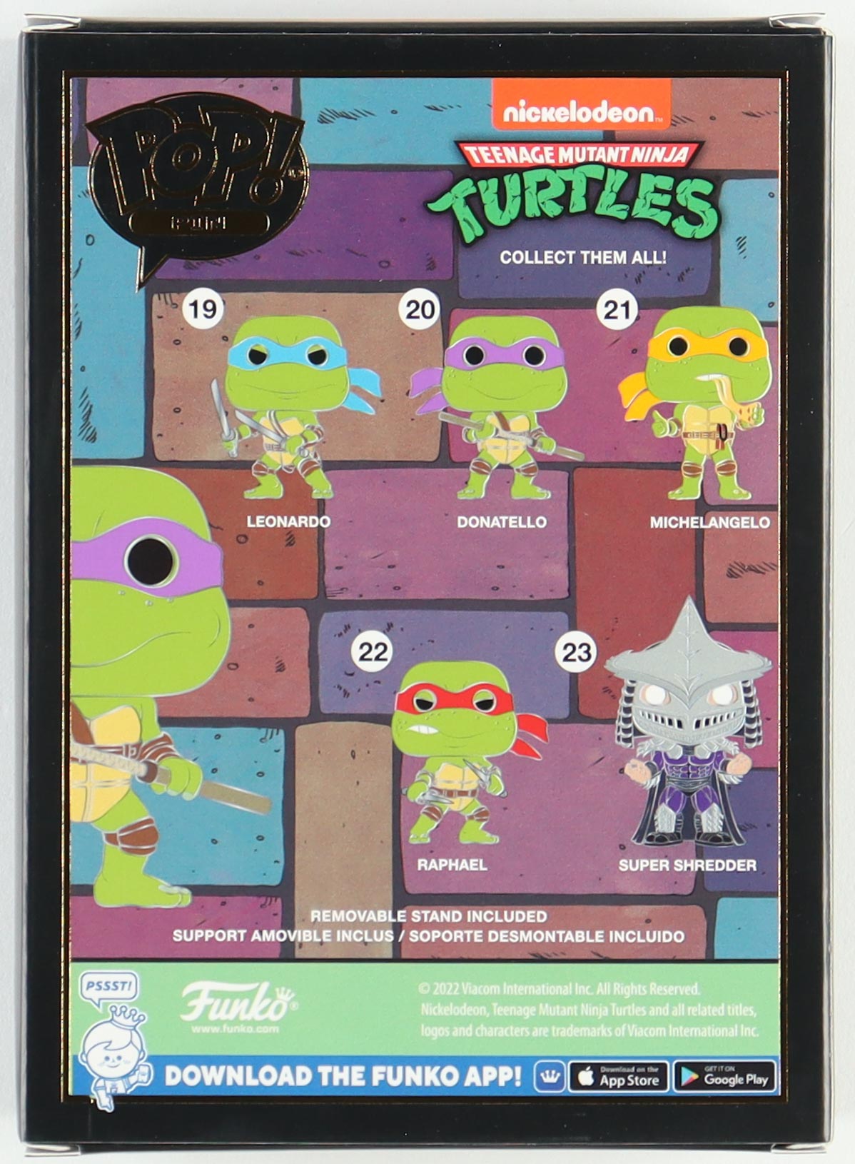 Funko Pop! pin measures approximately 4" tall and has been hand-signed on the packaging by Kevin Eastman.