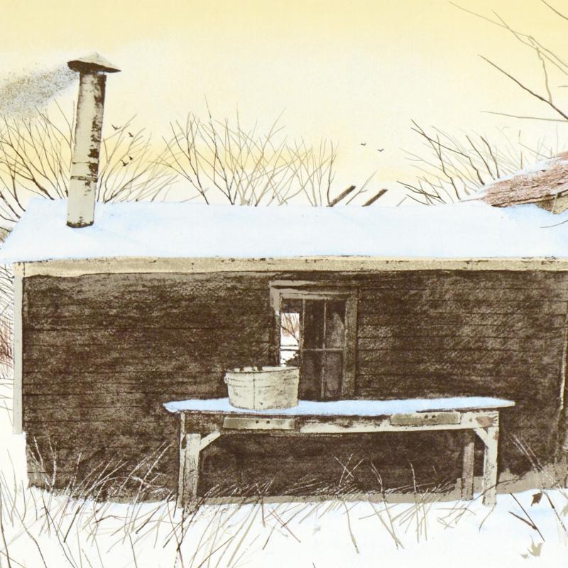 "Hunter's Shack" is a limited edition lithograph on paper by William Nelson, numbered and hand signed by the artist! Measures approx. 29" x 22" (with border); 25" x 18" (image).