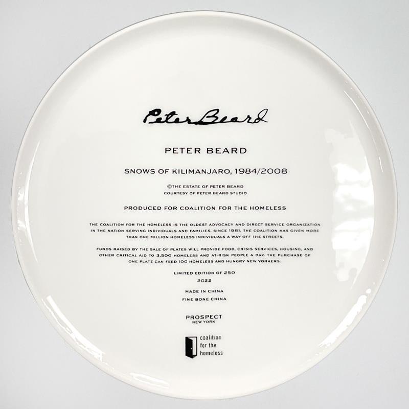 "Snows of Kilimanjaro" is a limited edition plate by Peter Beard (1938-2020). This plate is custom framed and floated on linen. Measures approx. 15.5" x 15.5" (frame), 11" (plate diameter).
