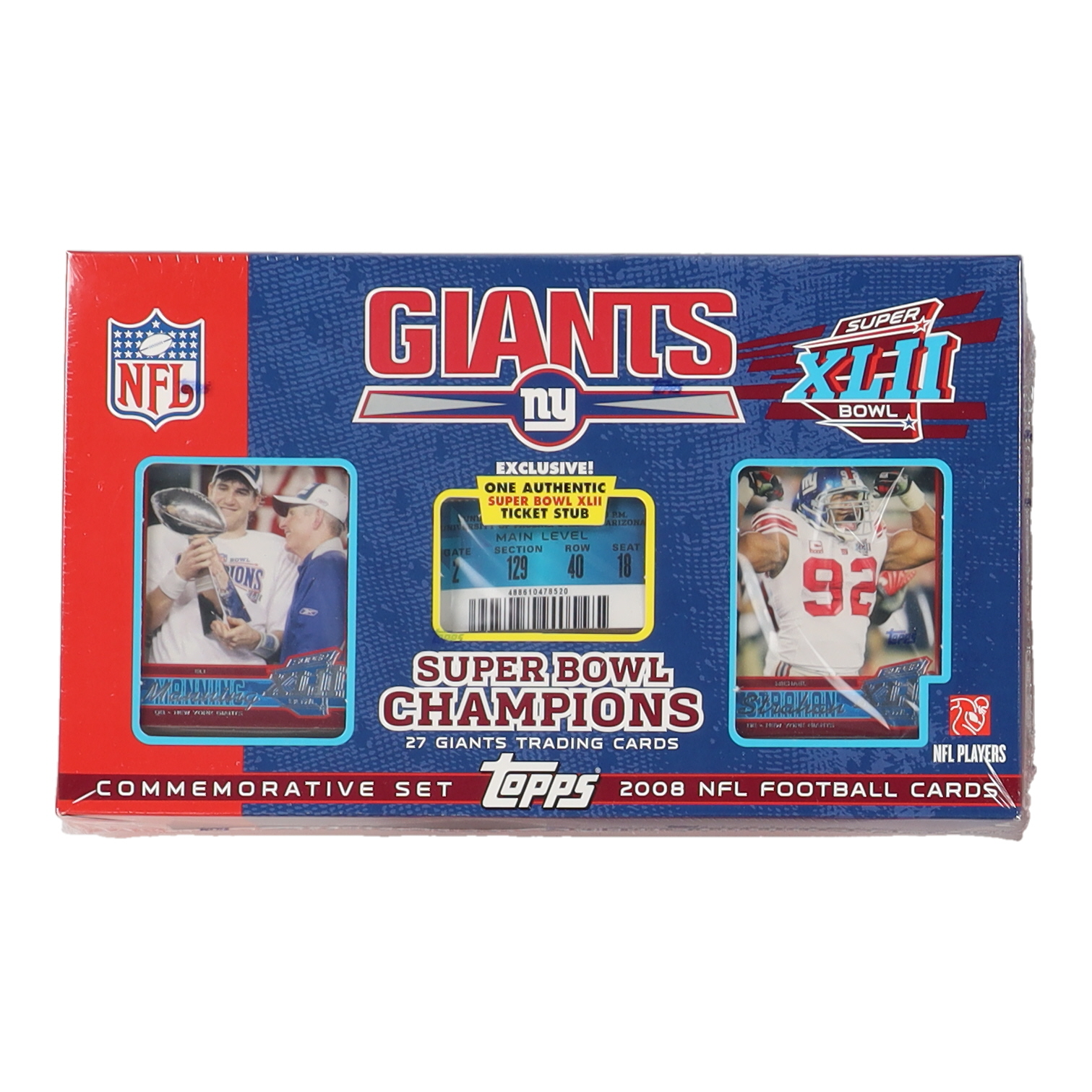 (27) cards per box, (1) Super Bowl XLII Ticket Stub per box. See photos for details.