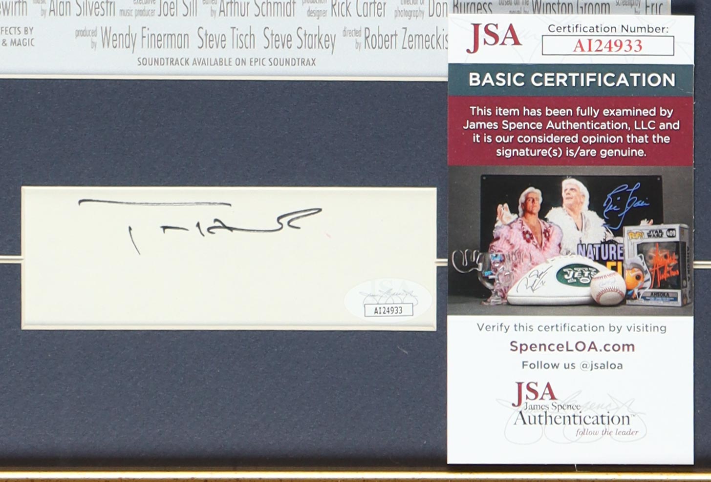 Custom framed display measures approximately 16" x 25" in size and features a cut that has been hand-signed by Tom Hanks. The display also includes a poster print for the film.