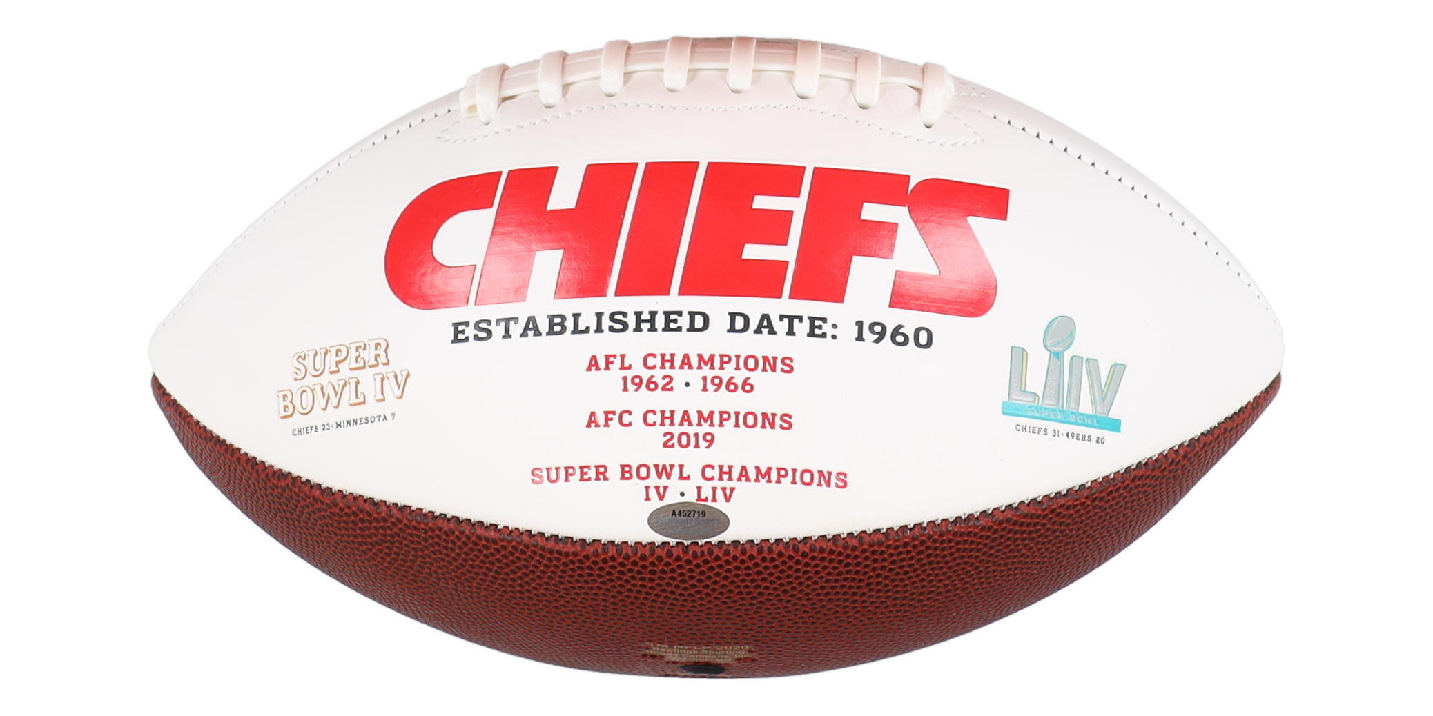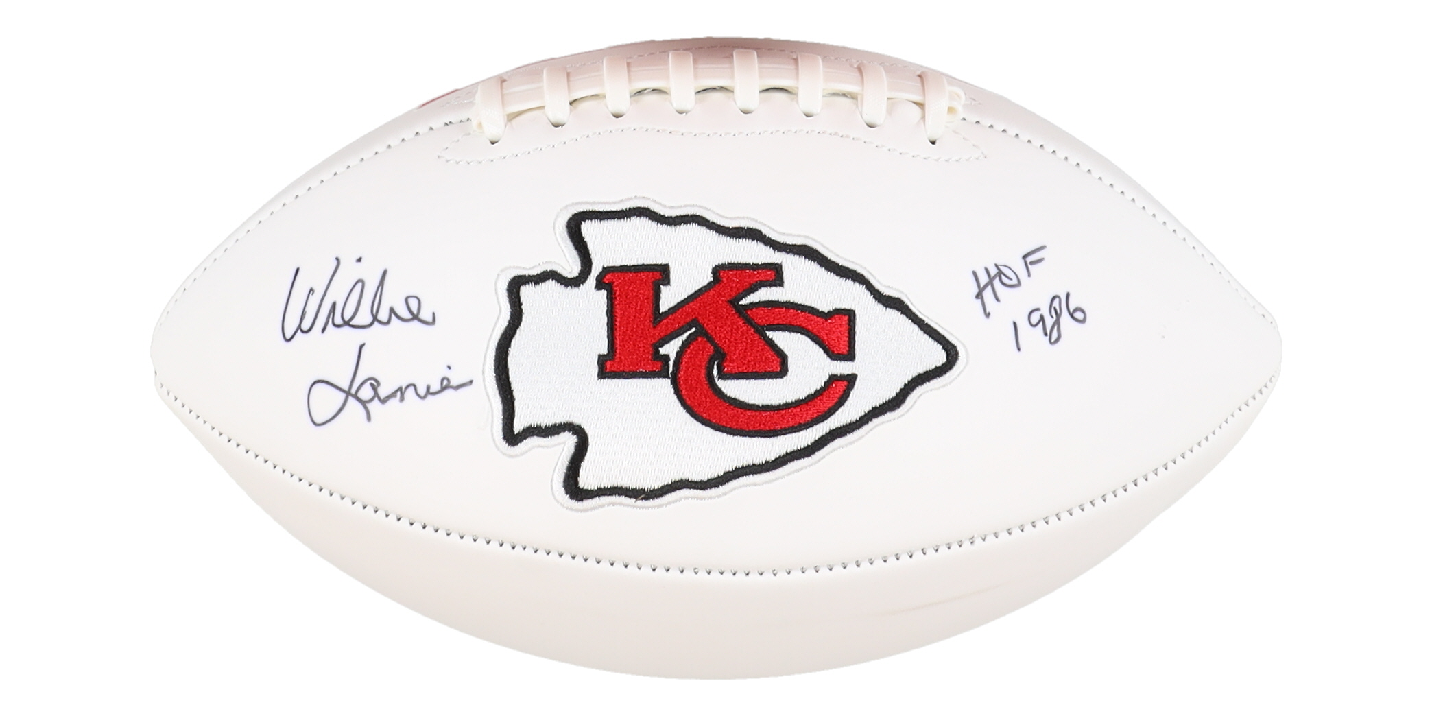 Kansas City Chiefs logo football. Hand-signed and inscribed by Willie Lanier (HOF).