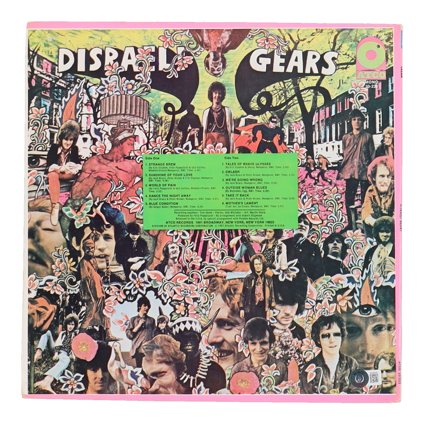 Ginger Baker Signed "Cream: Disraeli Gears" Vinyl Record Album Cover (Beckett)