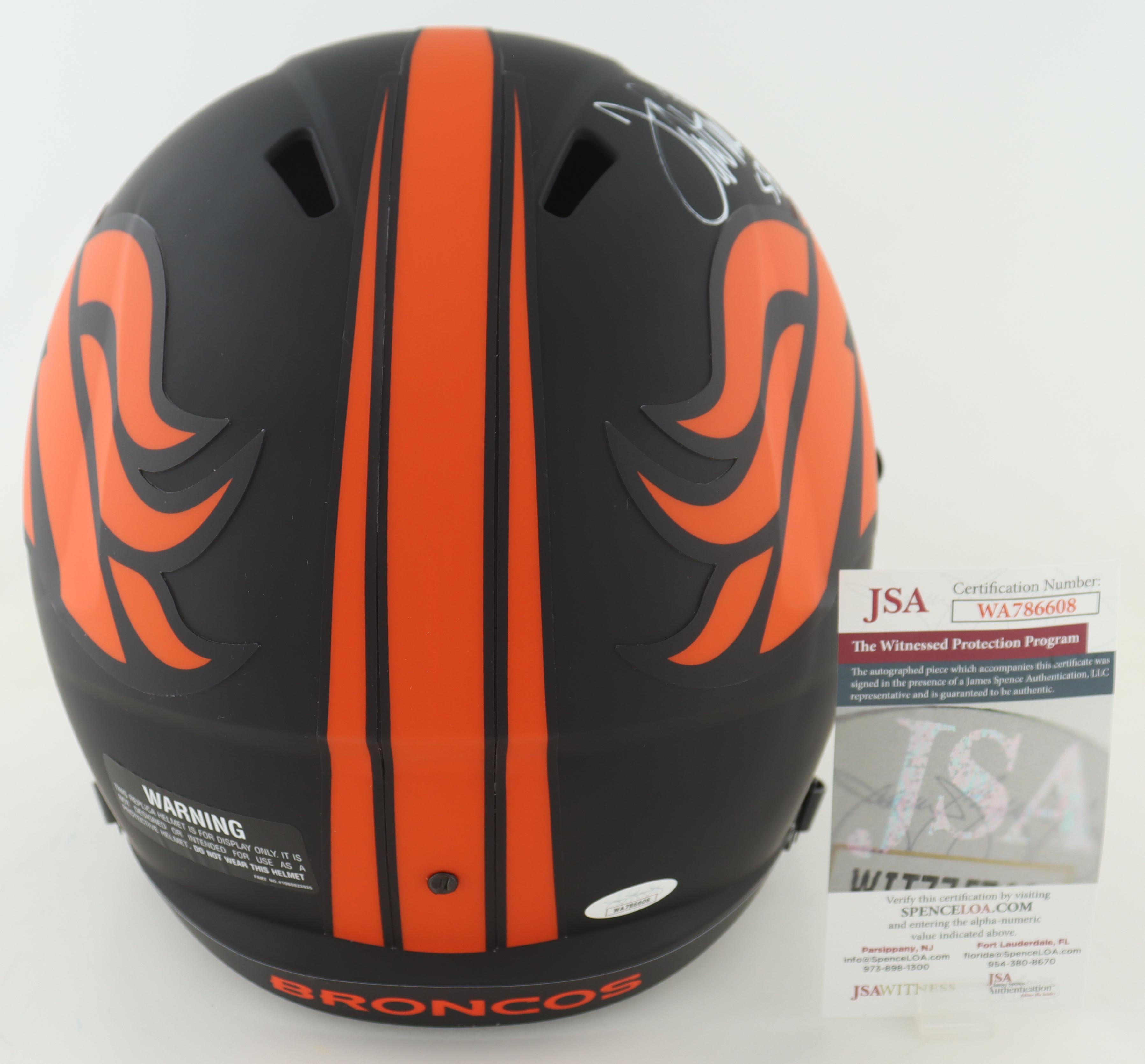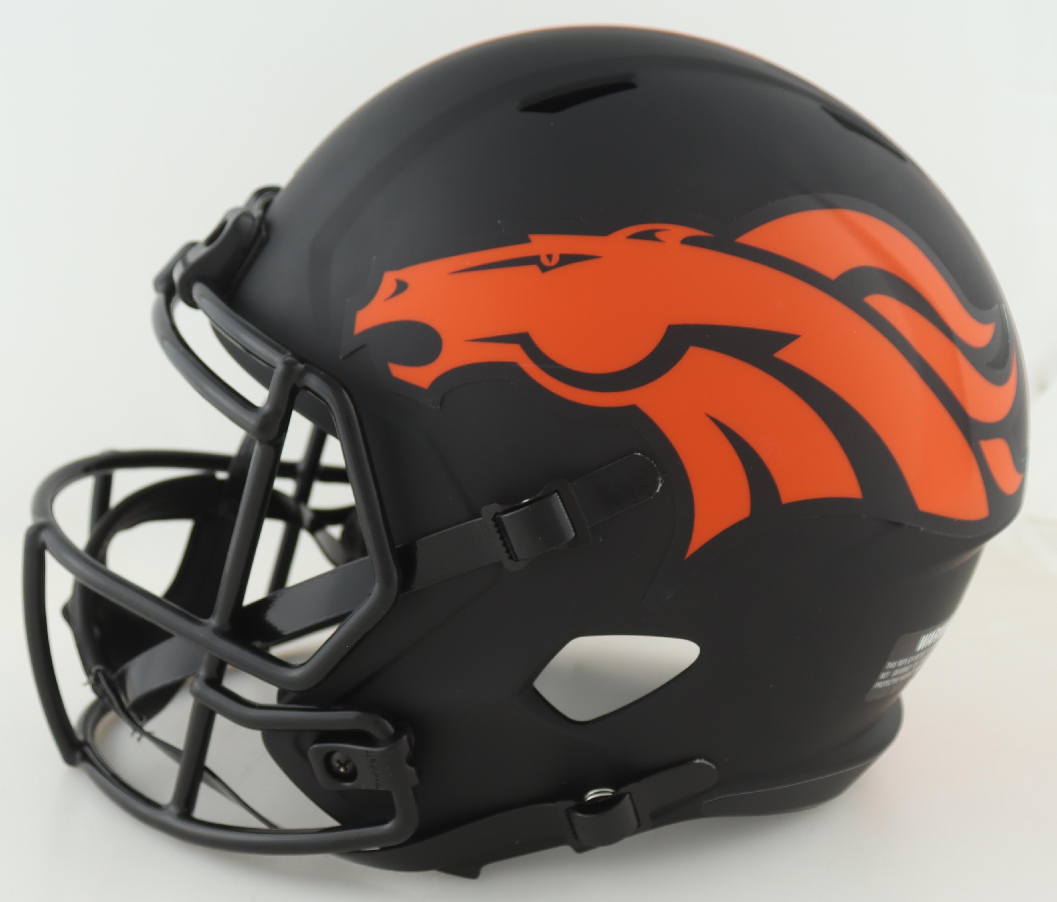 Riddell Denver Broncos full-size replica Eclipse alternate speed helmet. Hand-signed and inscribed by Terrell Davis.