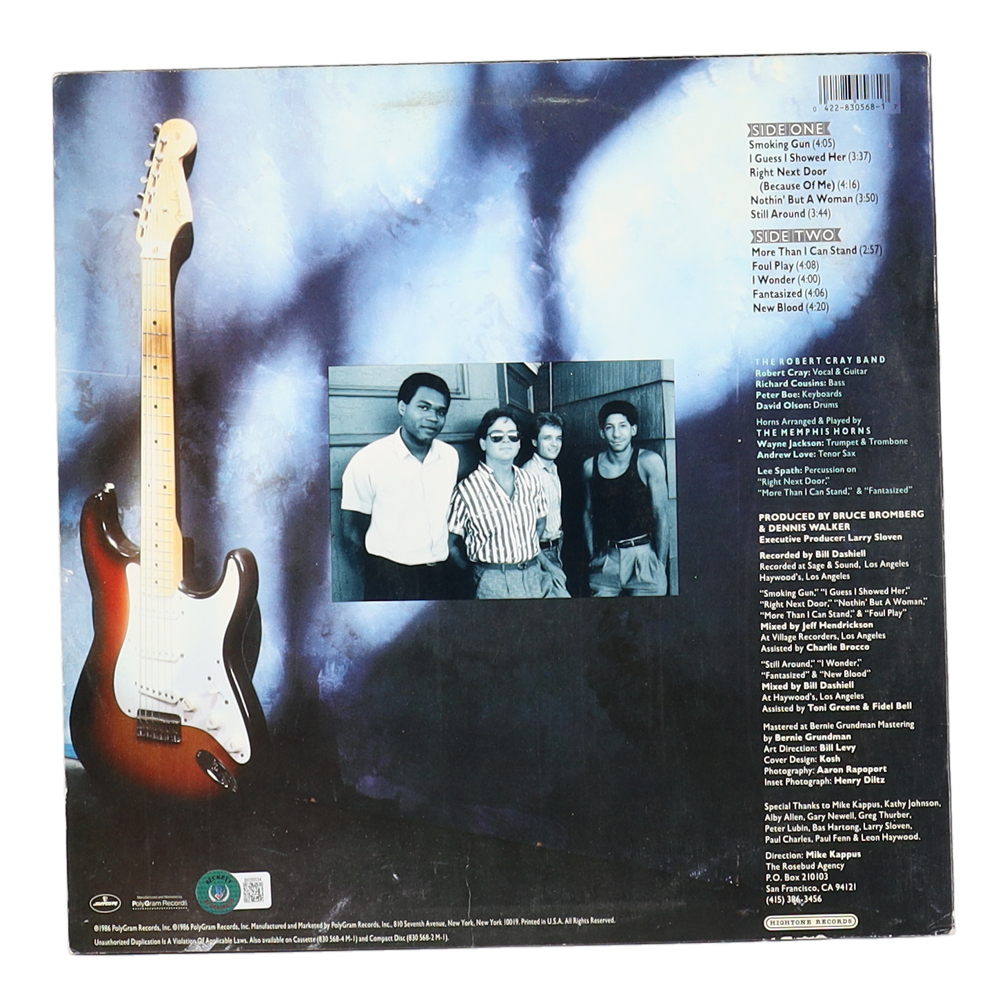 Vinyl record album has been hand-signed on the front cover by Robert Cray.