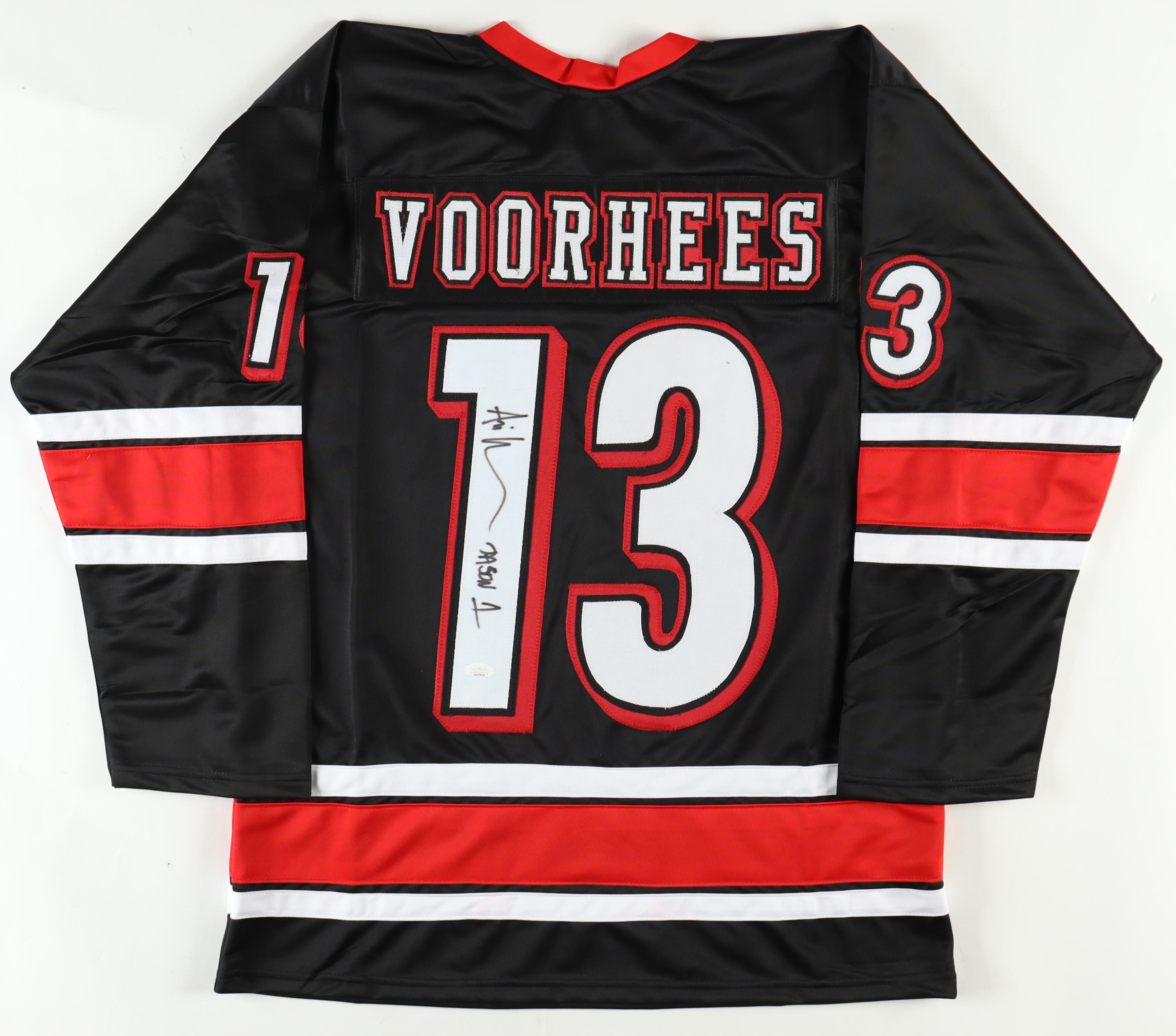 Custom jersey with everything sewn on, size XL. Hand-signed and inscribed by Ari Lehman.