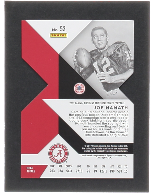 Joe Namath 2017 Elite Draft Picks Status Die Cut Purple #52 #11/99