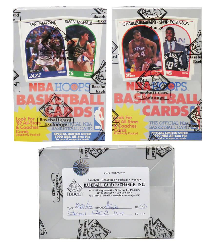 This is for one (1) unopened box of 1989 Hoops Series 1 basketball cards, which has been professionally wrapped and sealed by BBCE and marked FASC, as the box came directly from a sealed case. The box contains 36 unopened packs - try to find the David Robinson RC and Michael Jordan #200. We may have more than one of the box in stock and each one has been BBCE wrapped and FASC marked. We have included a stock photo (Player Image on Front of Box May Vary) for this item and the Box you will receive will be of the box described, and BBCE FASC Wrapped and Sealed as shown.