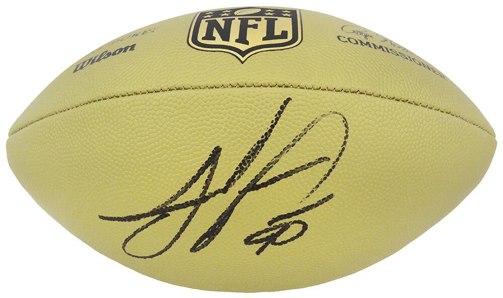 Wilson "The Duke" gold Official NFL game football. Hand-signed by Julius Peppers (Carolina Panthers).