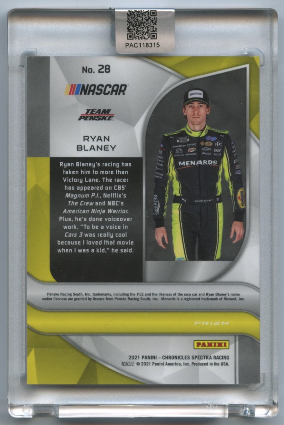 Ryan Blaney Signed 2021 Panini Chronicles Spectra #28 (PA Encapsulated)
