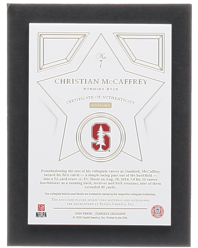 Christian McCaffrey 2020 Panini Flawless Star Swatch Signatures #7 #3/25