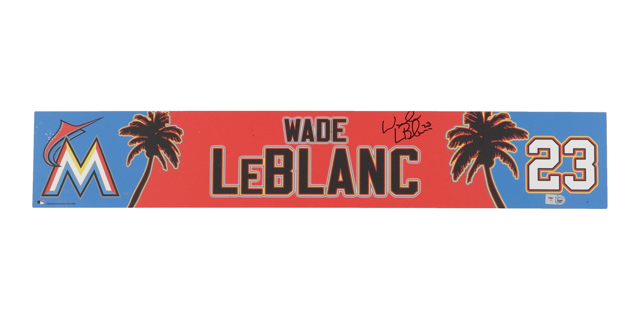 Placard measures 4" x 23" and has been hand-signed by Wade LeBlanc (Miami Marlins).