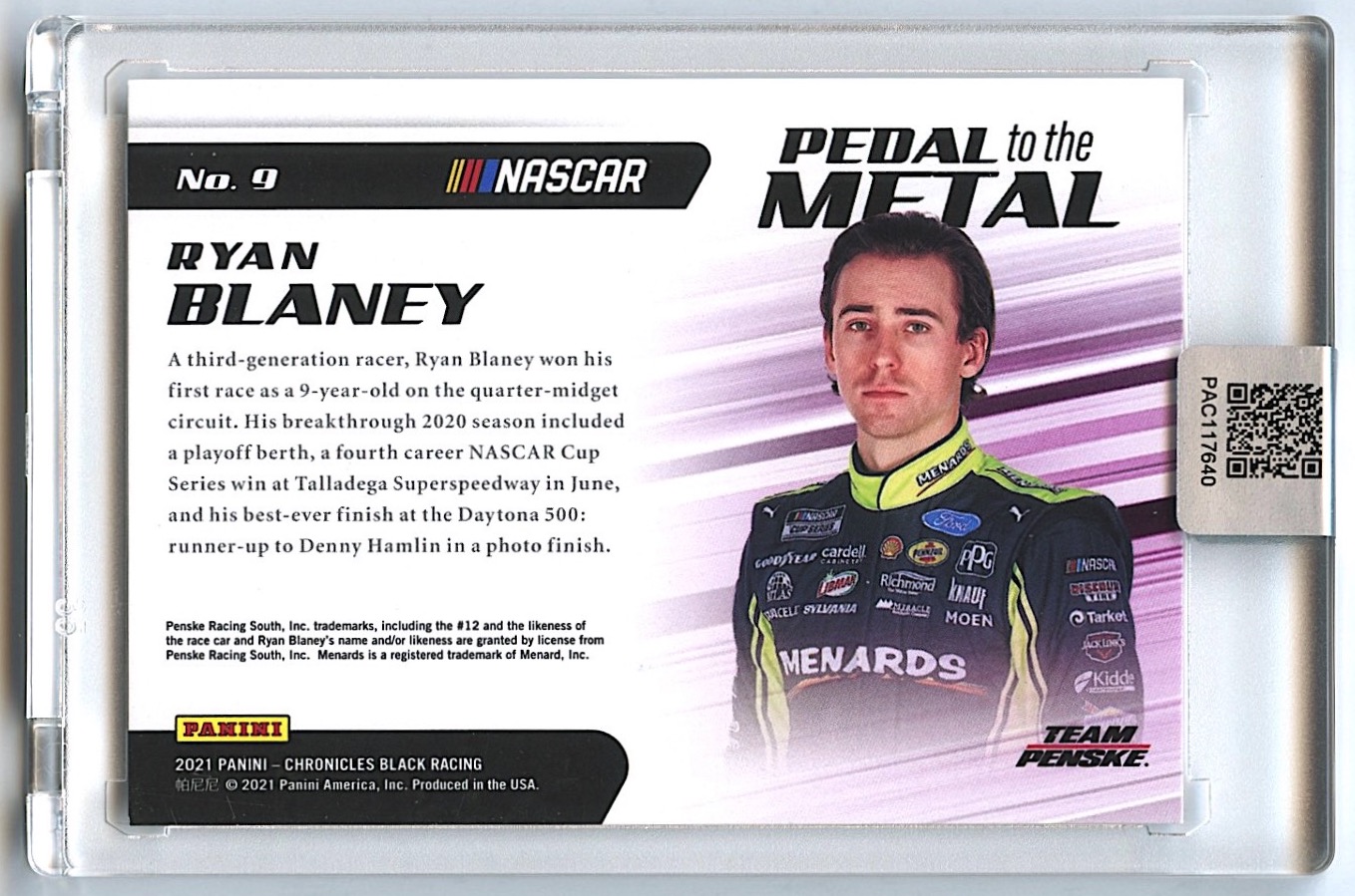 Ryan Blaney Signed 2021 Panini Chronicles Victory Pedal to the Metal #9 (PA Encapsulated)