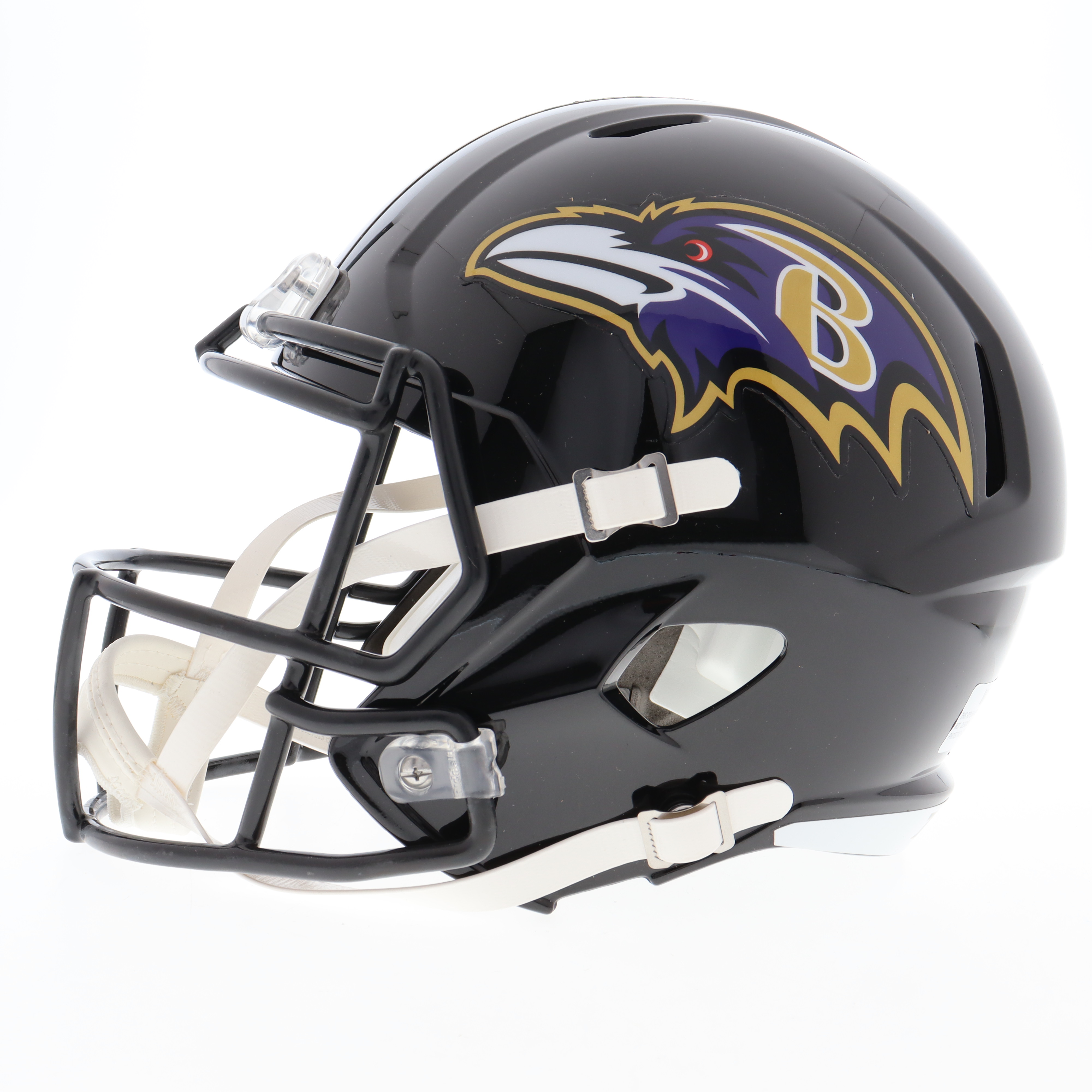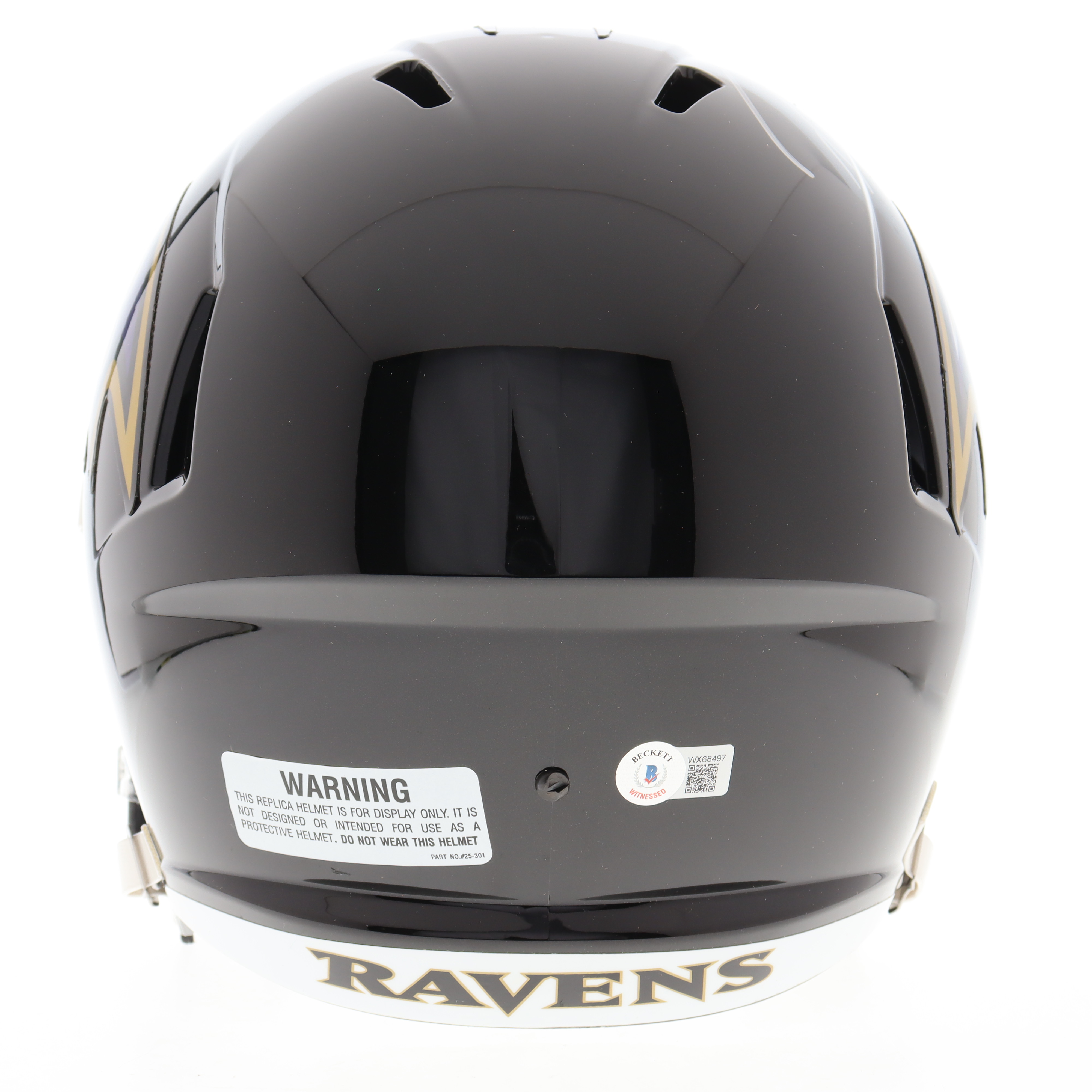 Riddell Baltimore Ravens full-size replica Speed helmet. Hand-signed and inscribed by Ray Lewis (HOF).