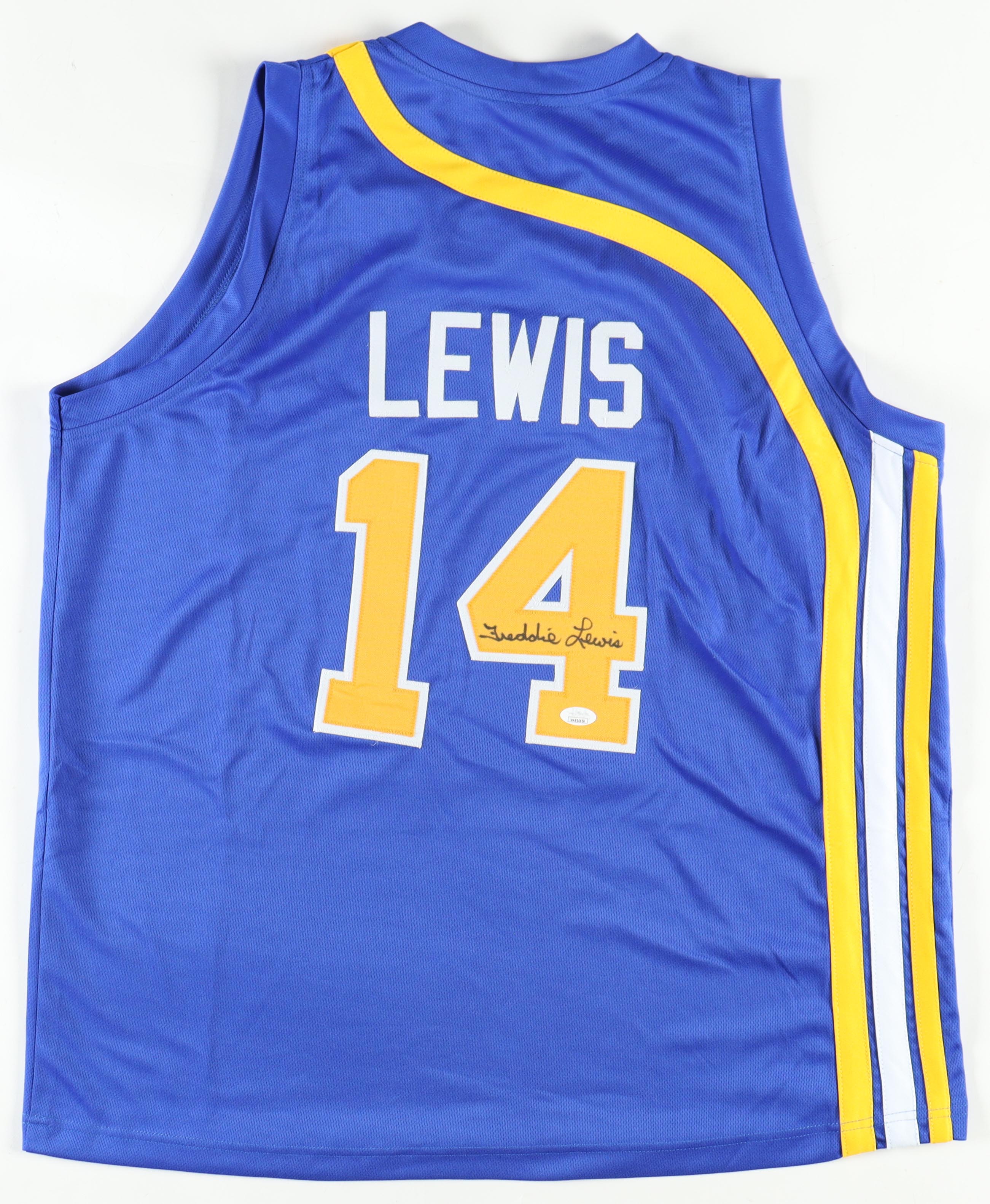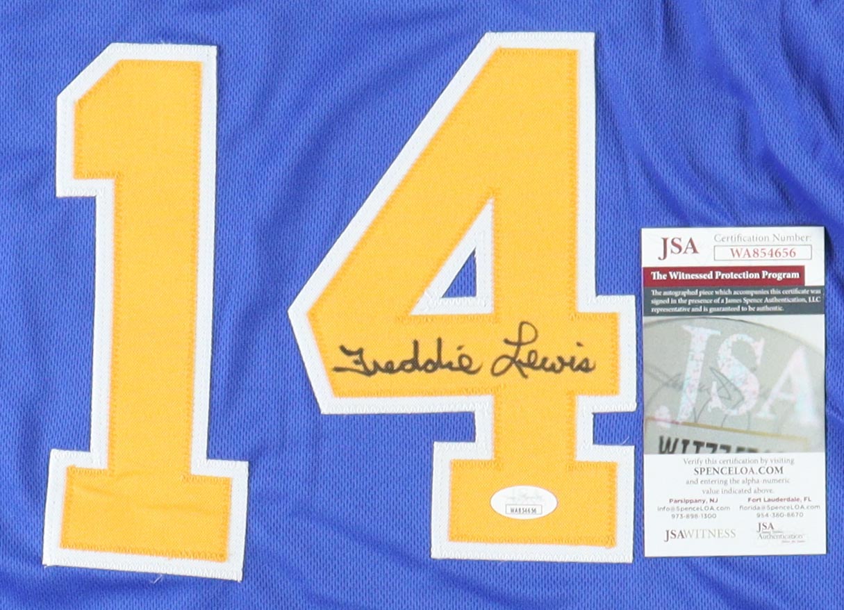 Custom jersey. Everything is sewn on, size XL. Hand-signed by Freddie Lewis.