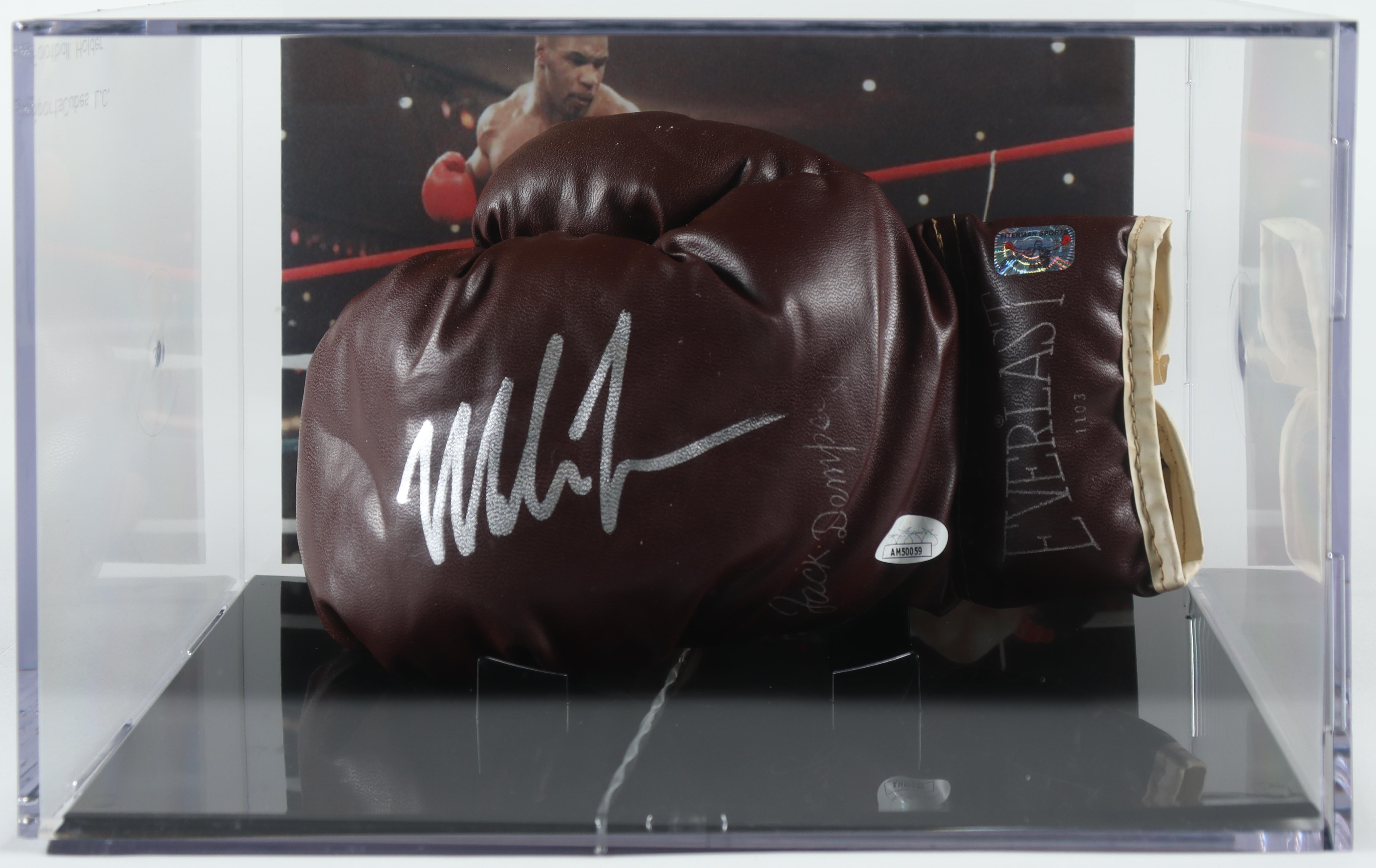 Mike Tyson Signed Vintage Everlast Jack Dempsey Model Boxing Glove with Low Profile Photo Display Case (JSA & Tyson)