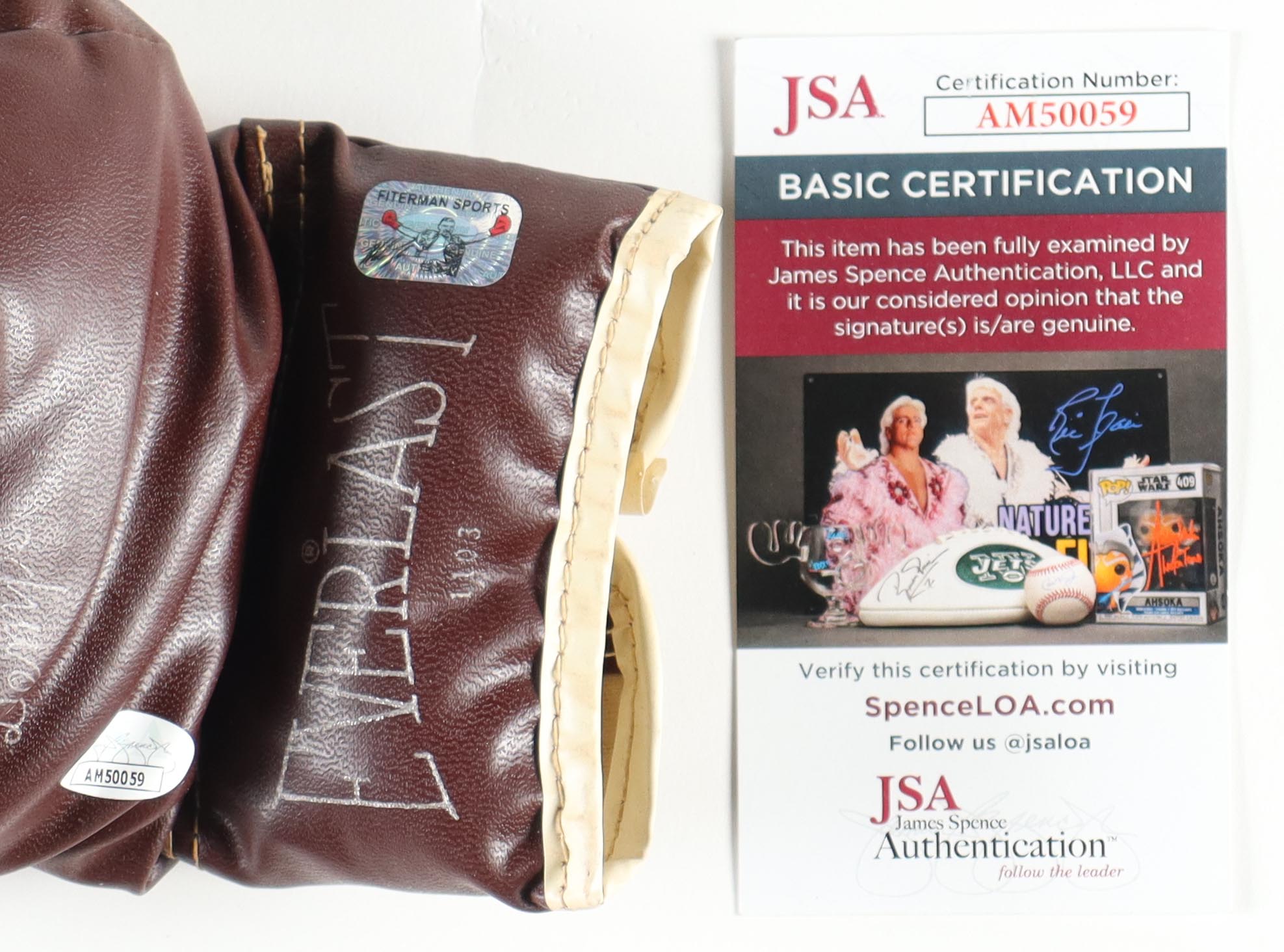 The lot / autograph(s) includes James Spence Authentication (JSA) hologram and matching COA, as well as an official Fiterman Sports Mike Tyson hologram for authenticity purposes.