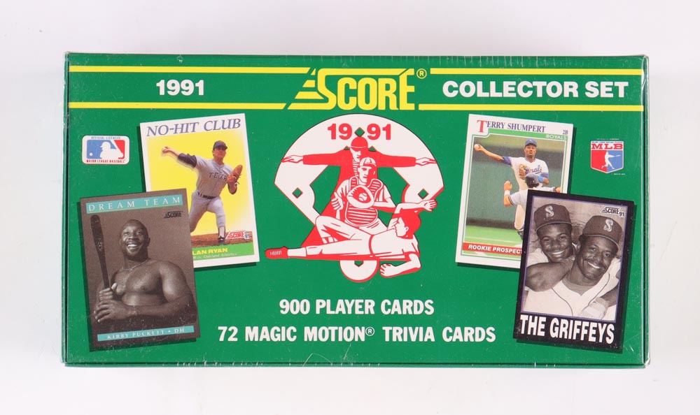 1991 Score Baseball Cards Collector Set with (900) Cards with Chipper Jones #671 RC, Mike Mussina #383 RC, Ken Griffey Jr. #2, Nolan Ryan #4