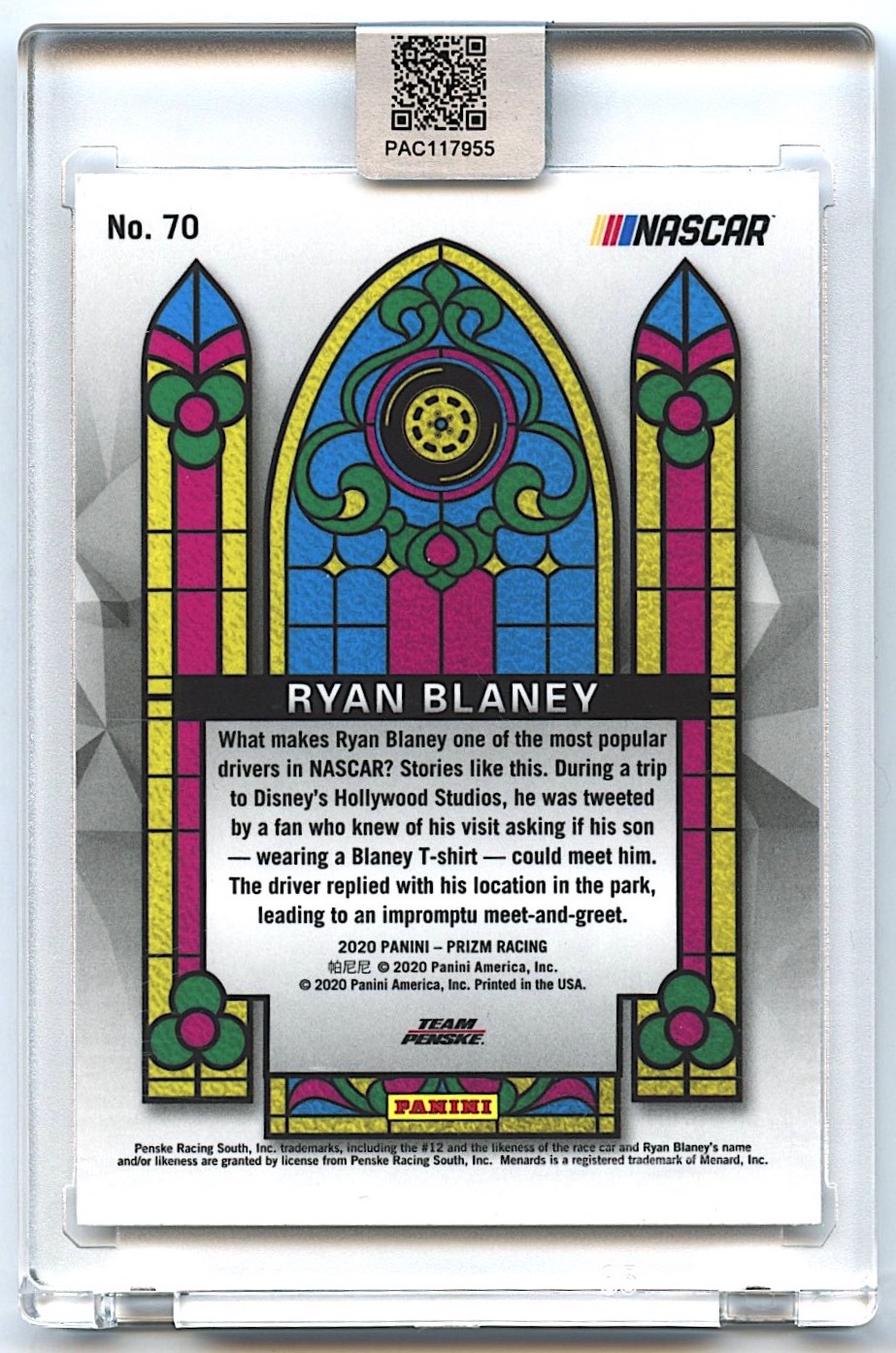 Ryan Blaney Signed 2020 Panini Prizm #70 Stained Glass (PA Encapsulated)