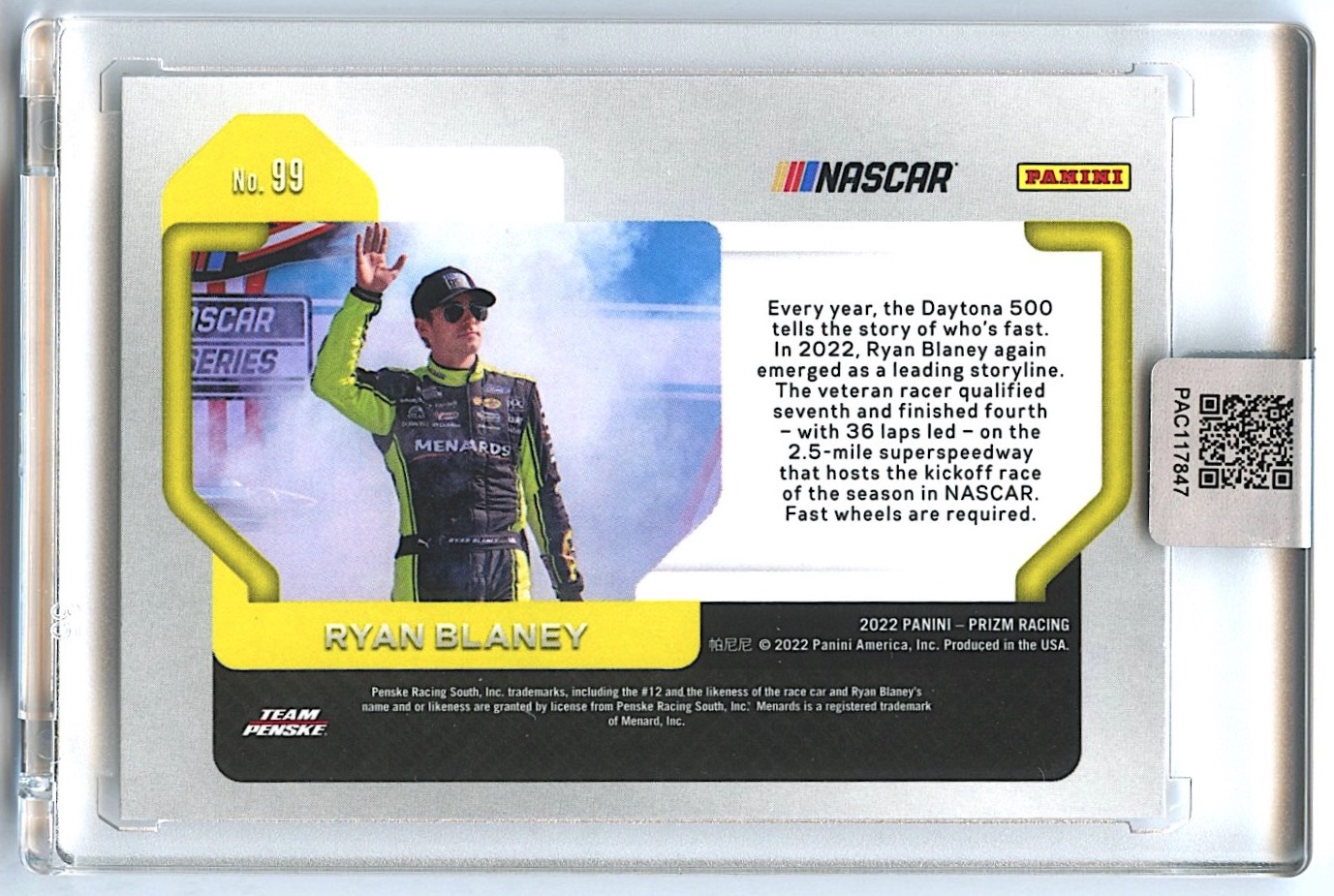 Ryan Blaney Signed 2022 Panini Prizm #99 (PA Encapsulated)
