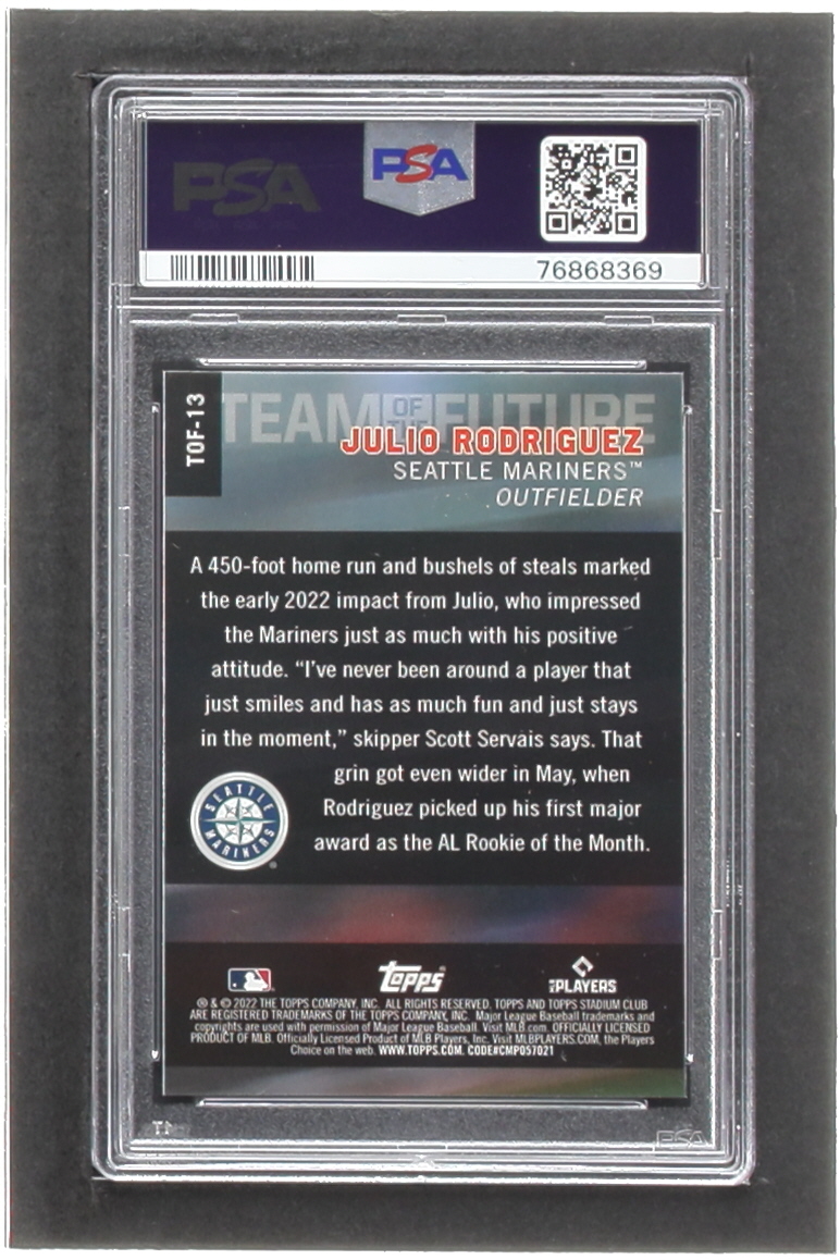 Julio Rodriguez 2022 Stadium Club Chrome Team of the Future #TOF13 RC (PSA 10)