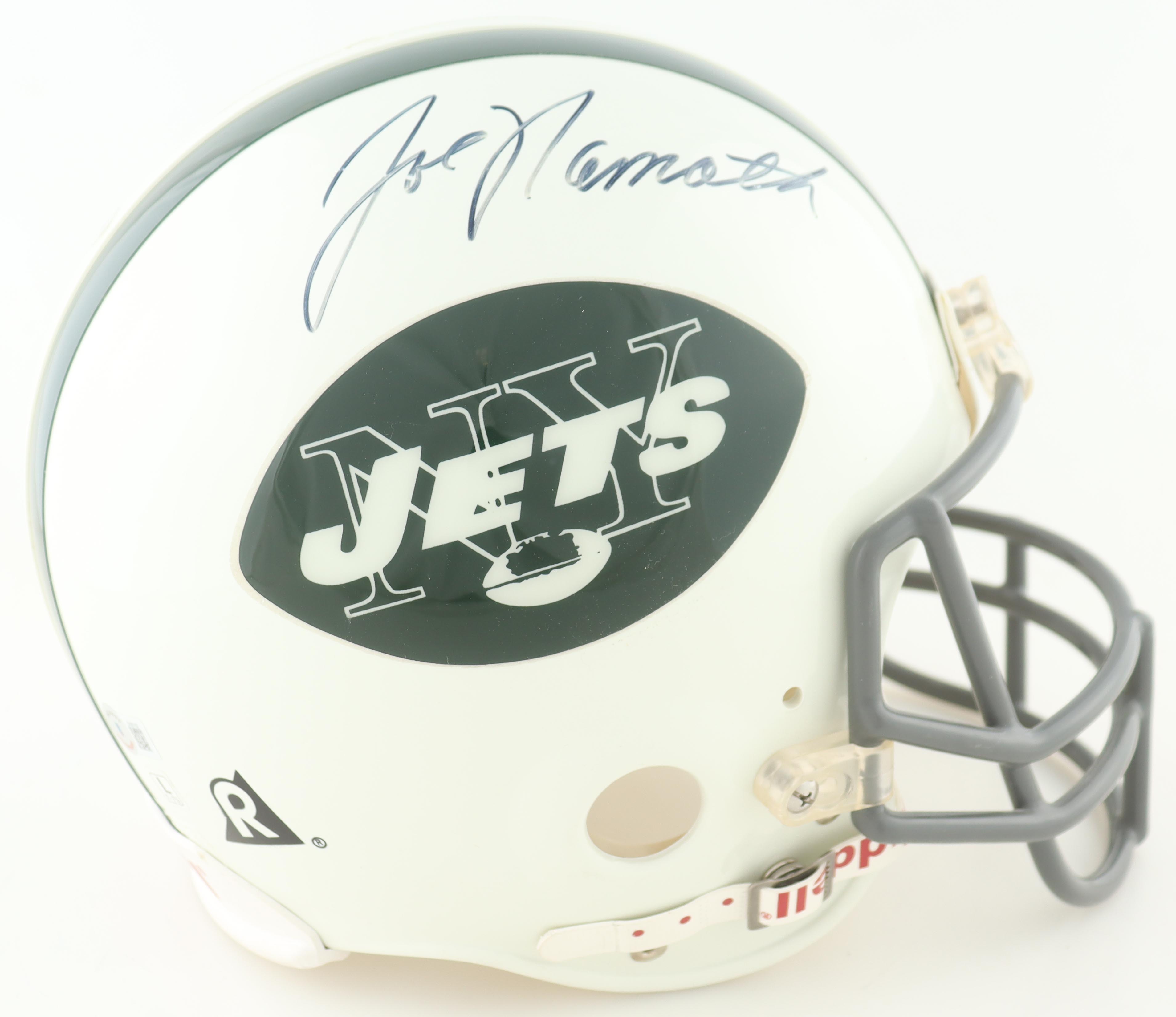 Riddell New York Jets full-size authentic on-field helmet. Hand-signed by Joe Namath (HOF).