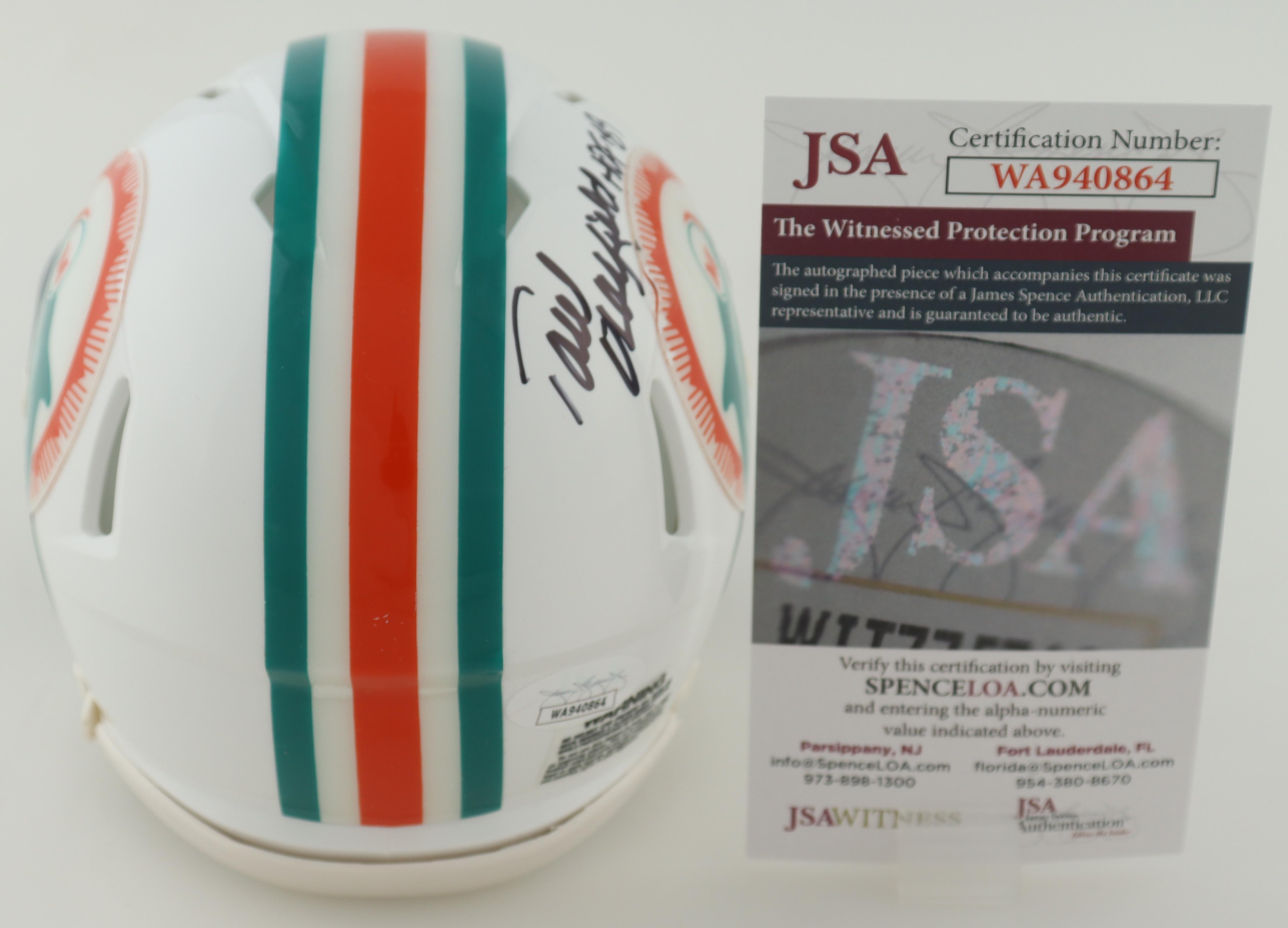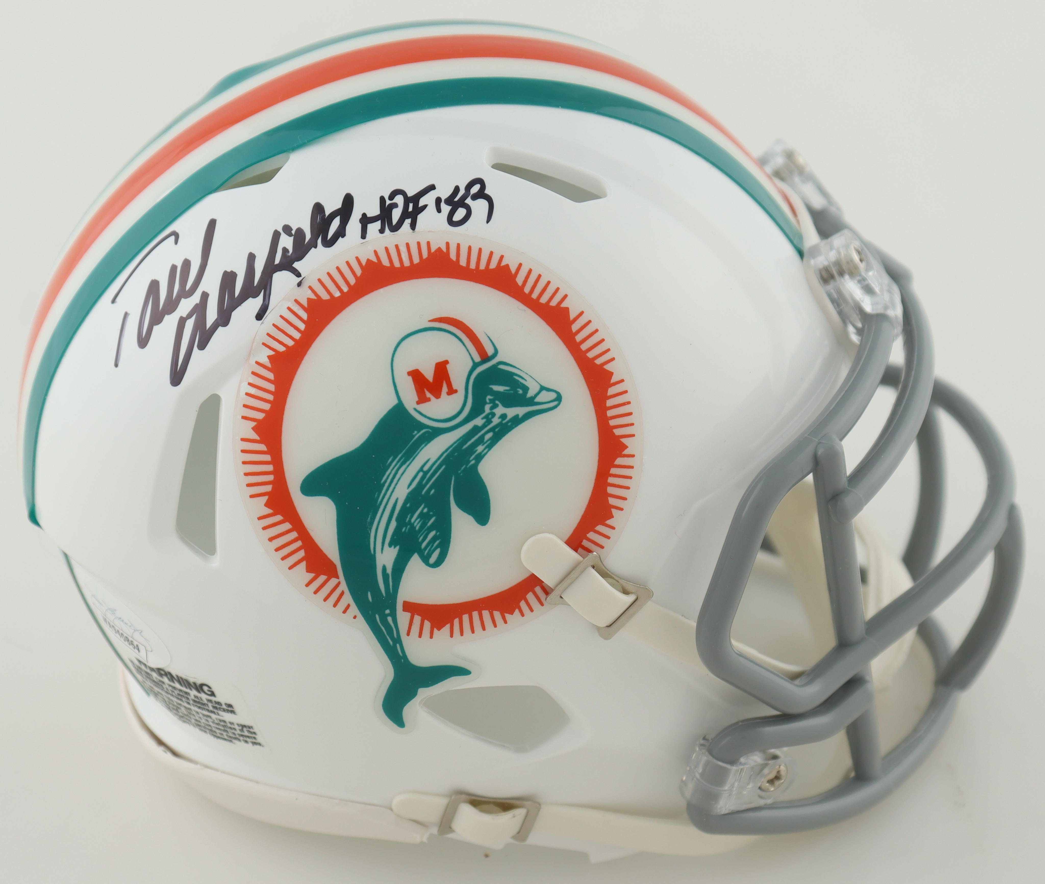 Riddell Miami Dolphins throwback mini helmet has been hand-signed and inscribed by Paul Warfield (HOF).