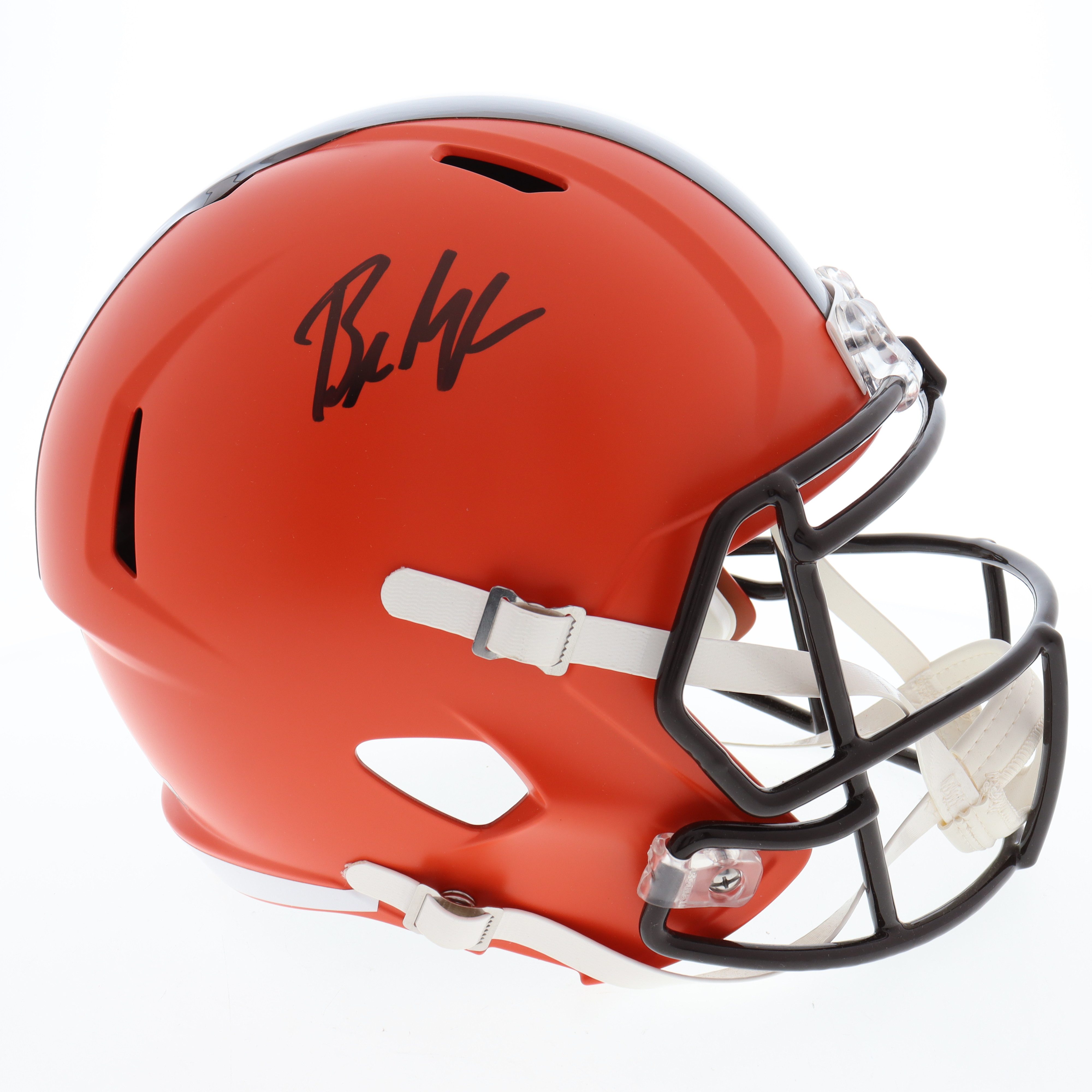 Riddell Cleveland Browns full-size replica on-field helmet. Hand-signed by Baker Mayfield.