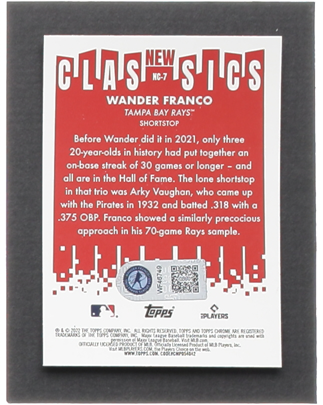 Wander Franco Signed 2022 Topps Chrome New Classics #NC7 RC (Franco)