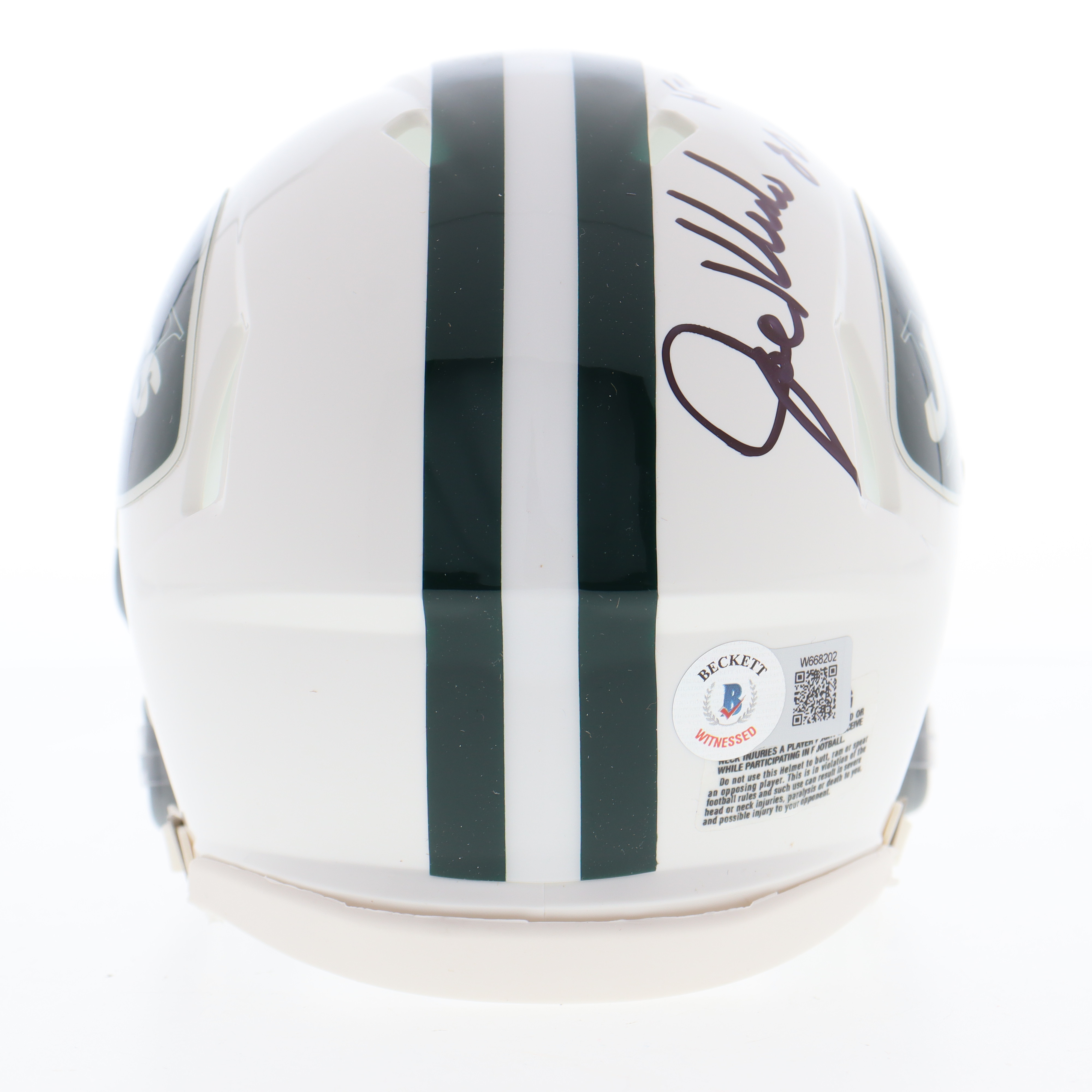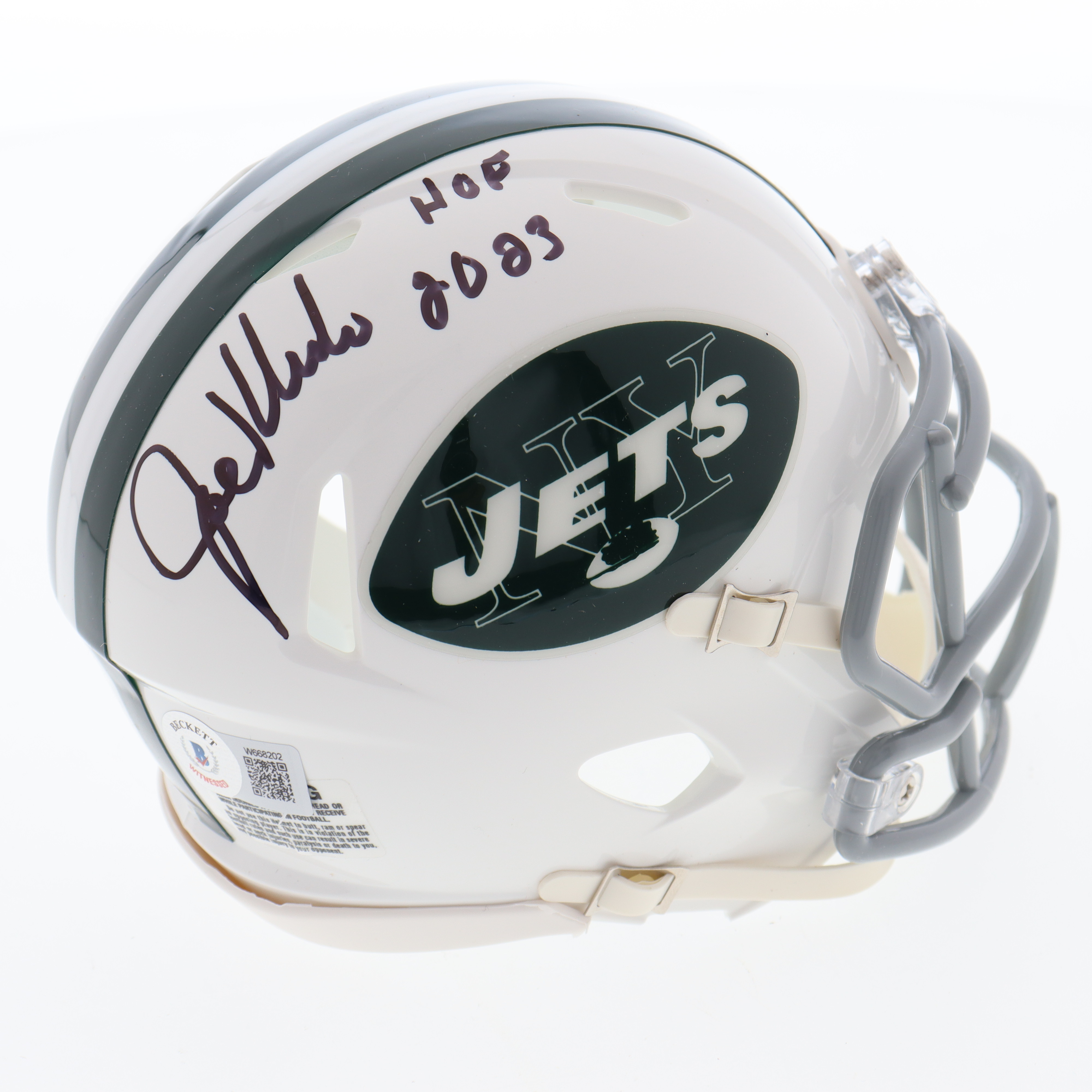 Riddell New York Jets speed mini helmet has been hand-signed and inscribed by Joe Klecko (HOF).
