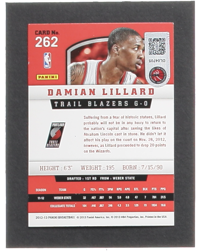 Damian Lillard Signed 2012-13 Panini #262 RC (Lillard)