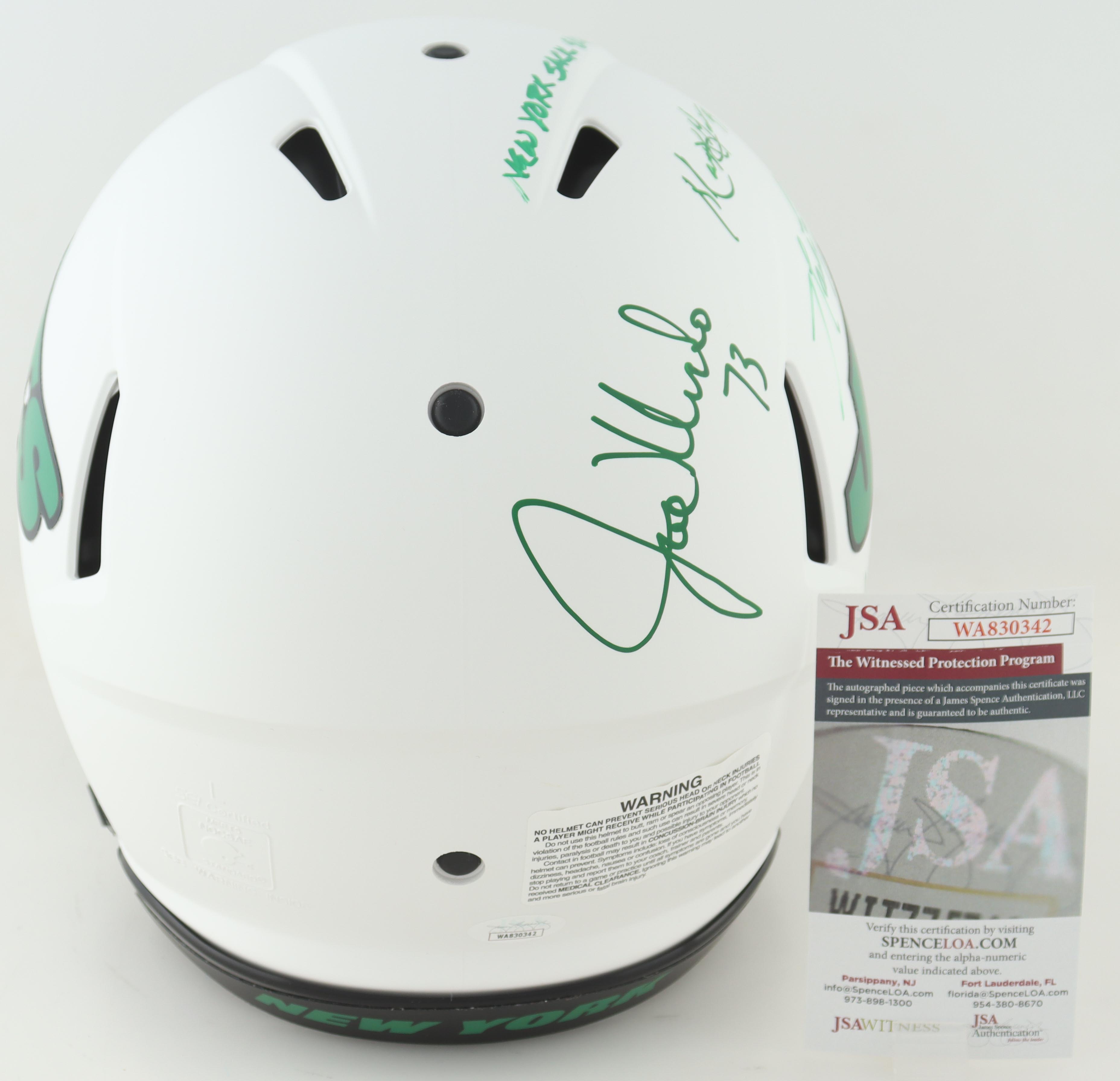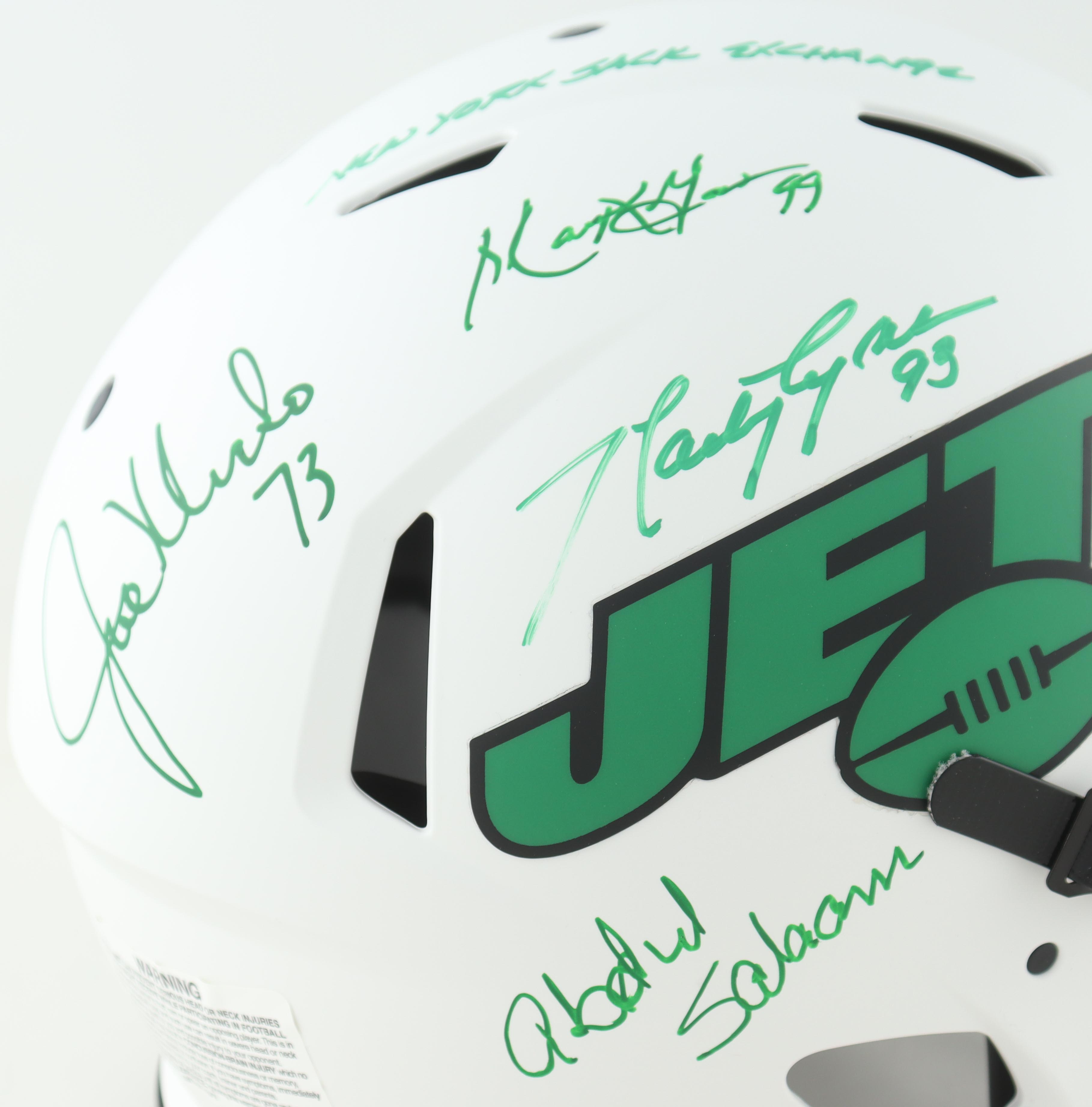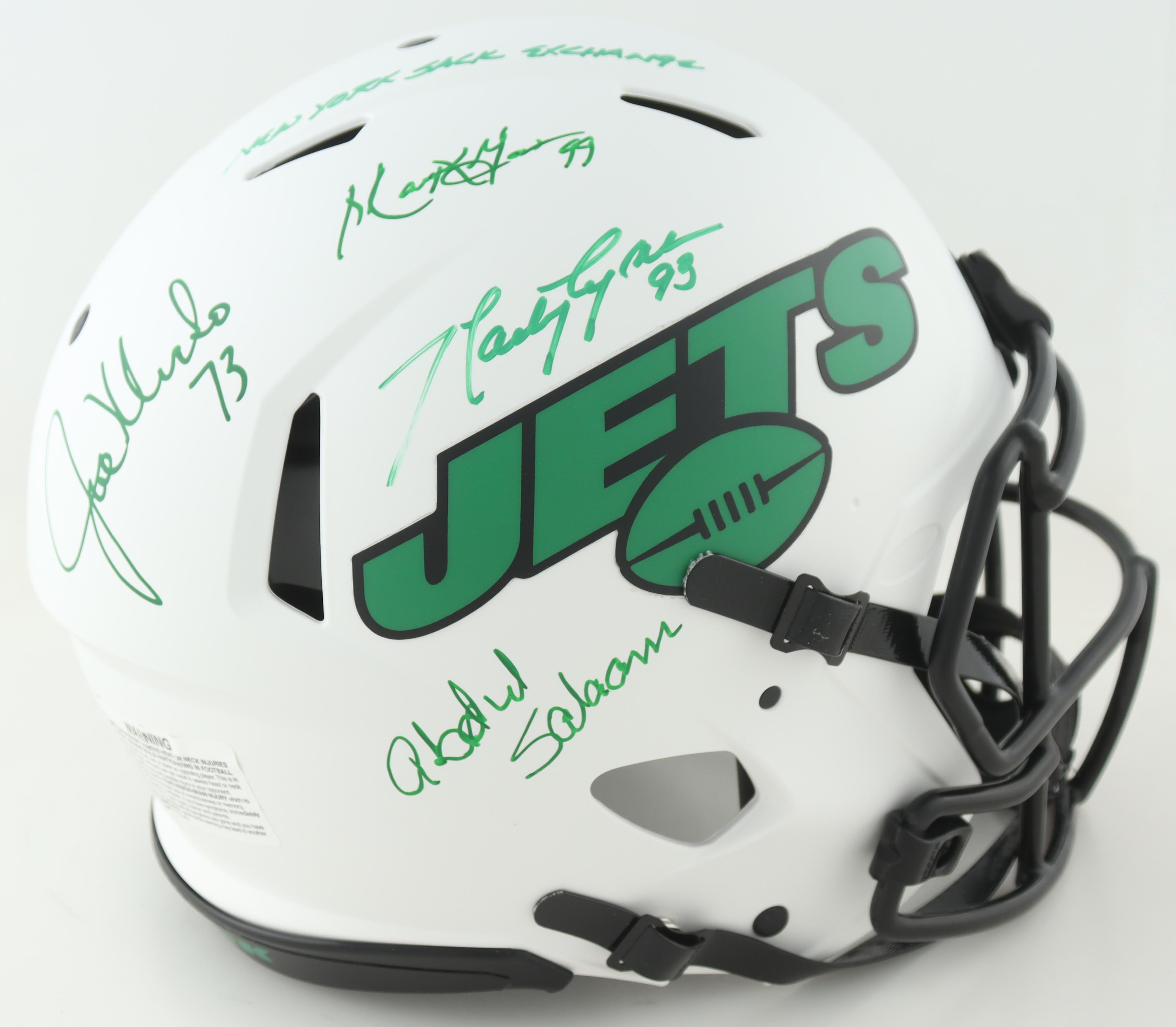 Riddell New York Jets Full-Size uthentic On-Field Lunar Eclipse Alternate Speed helmet. Hand-signed and inscribed by (4) with Mark Gastineau, Joe Klecko, Marty Lyons and Abdul Salaam. See photos for details.