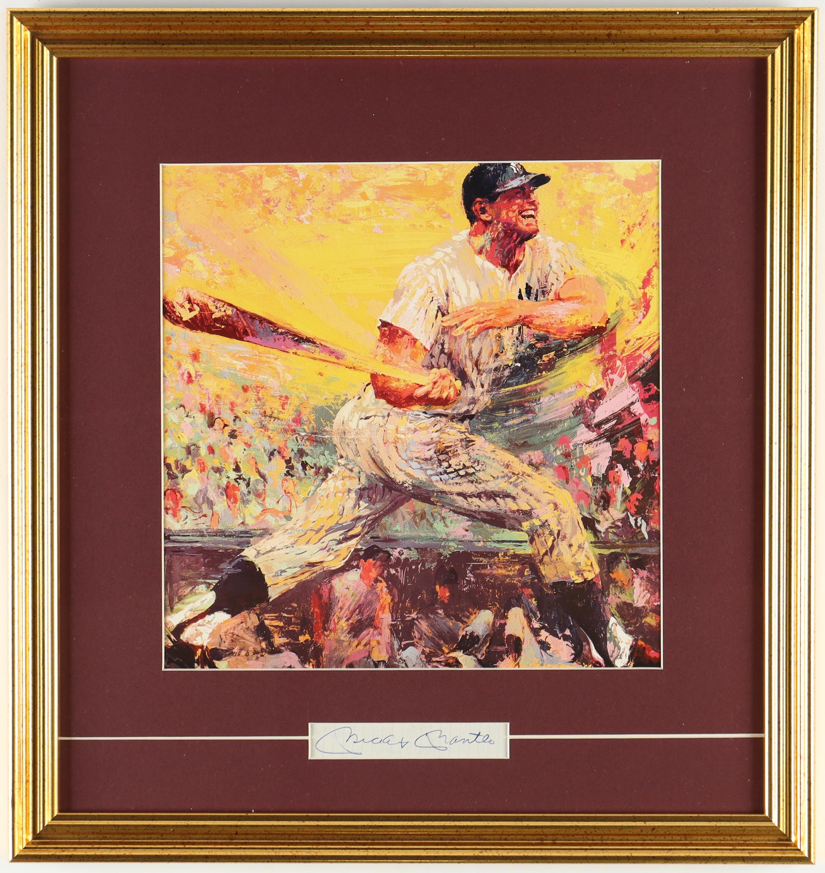 Mickey Mantle Signed "LeRoy Neiman" Custom Framed Cut Display (PSA)