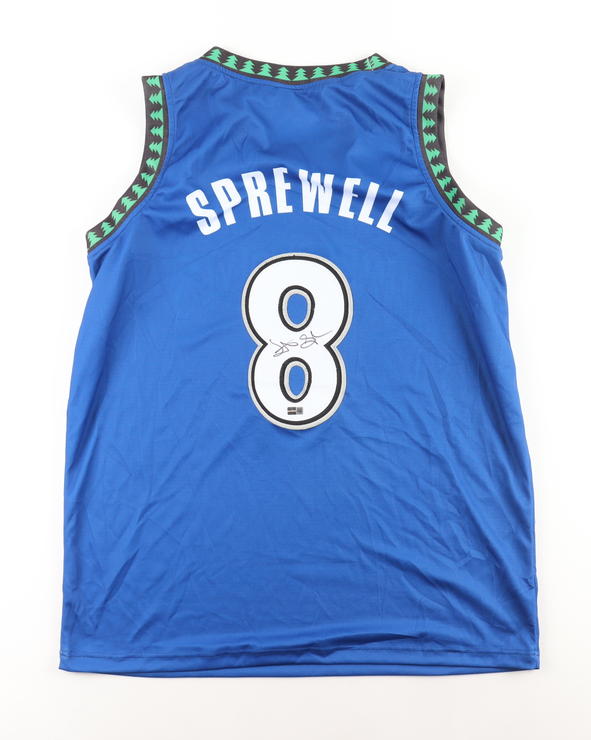 Custom jersey with everything sewn on, size XL. Hand-signed by Latrell Sprewell.