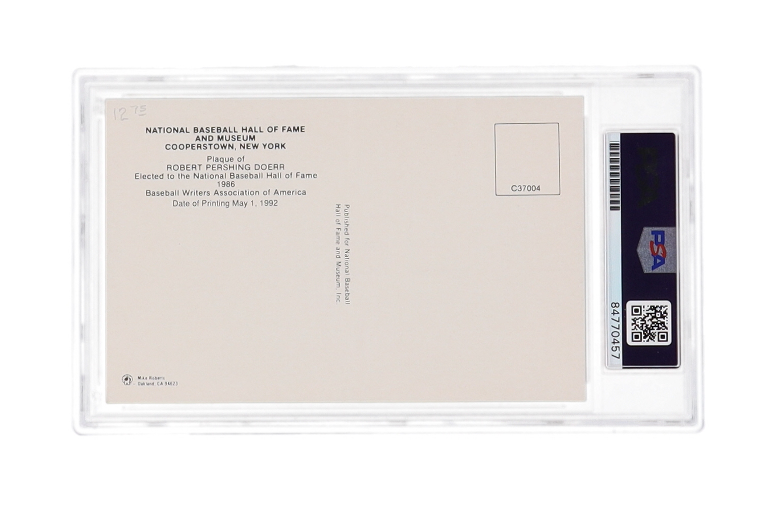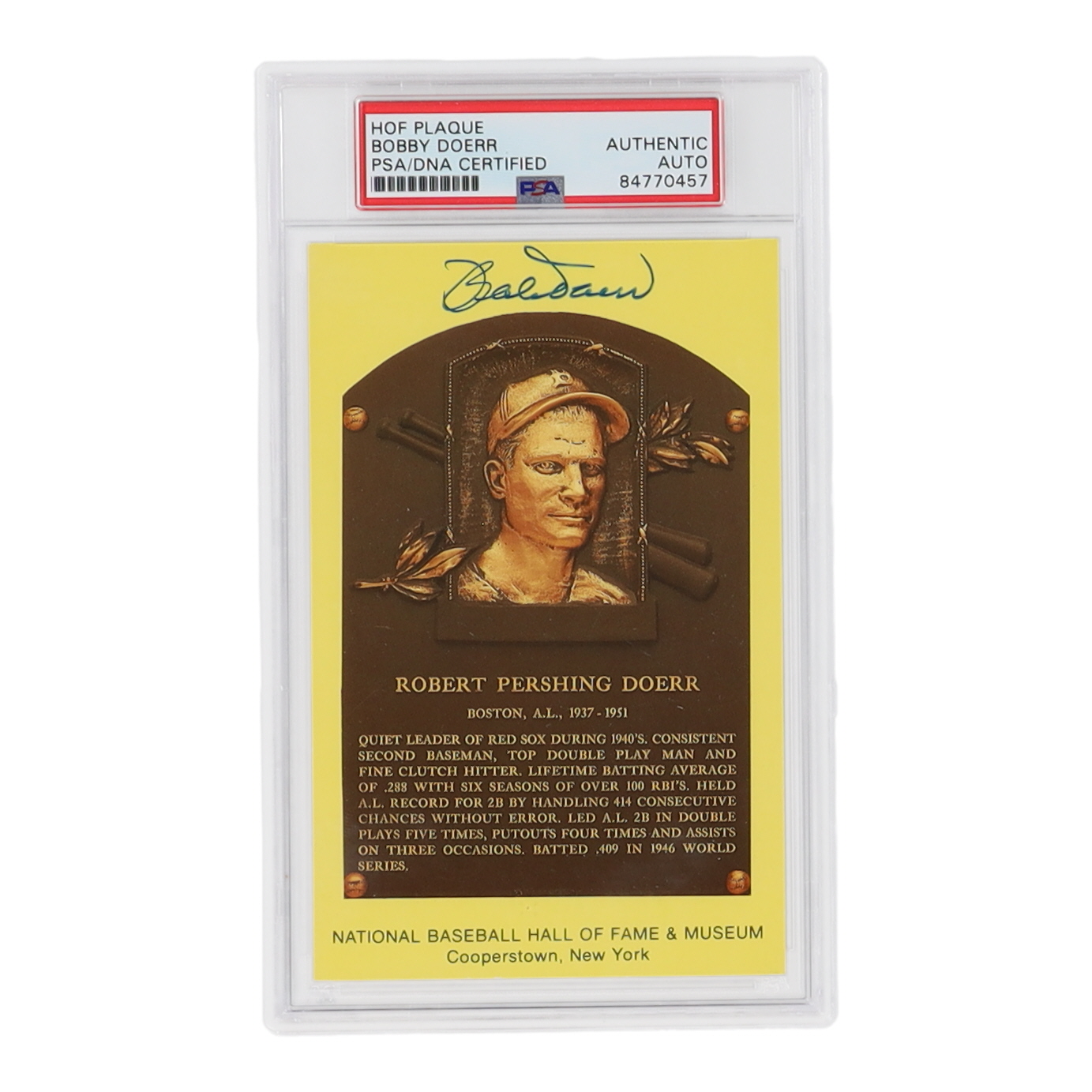 Bobby Doerr Signed Hall of Fame Plaque Postcard (PSA)