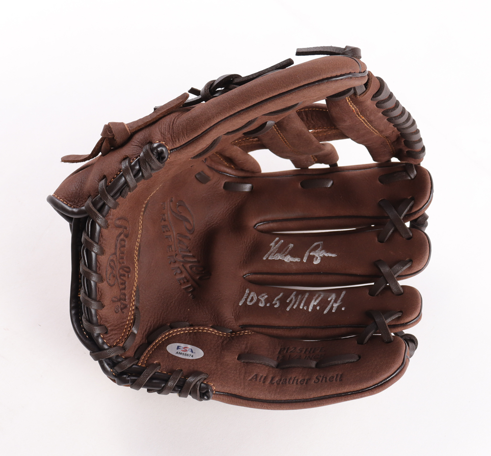 Nolan Ryan Signed Rawlings Baseball Glove Inscribed "108.5 MPH" with Display Case (PSA)