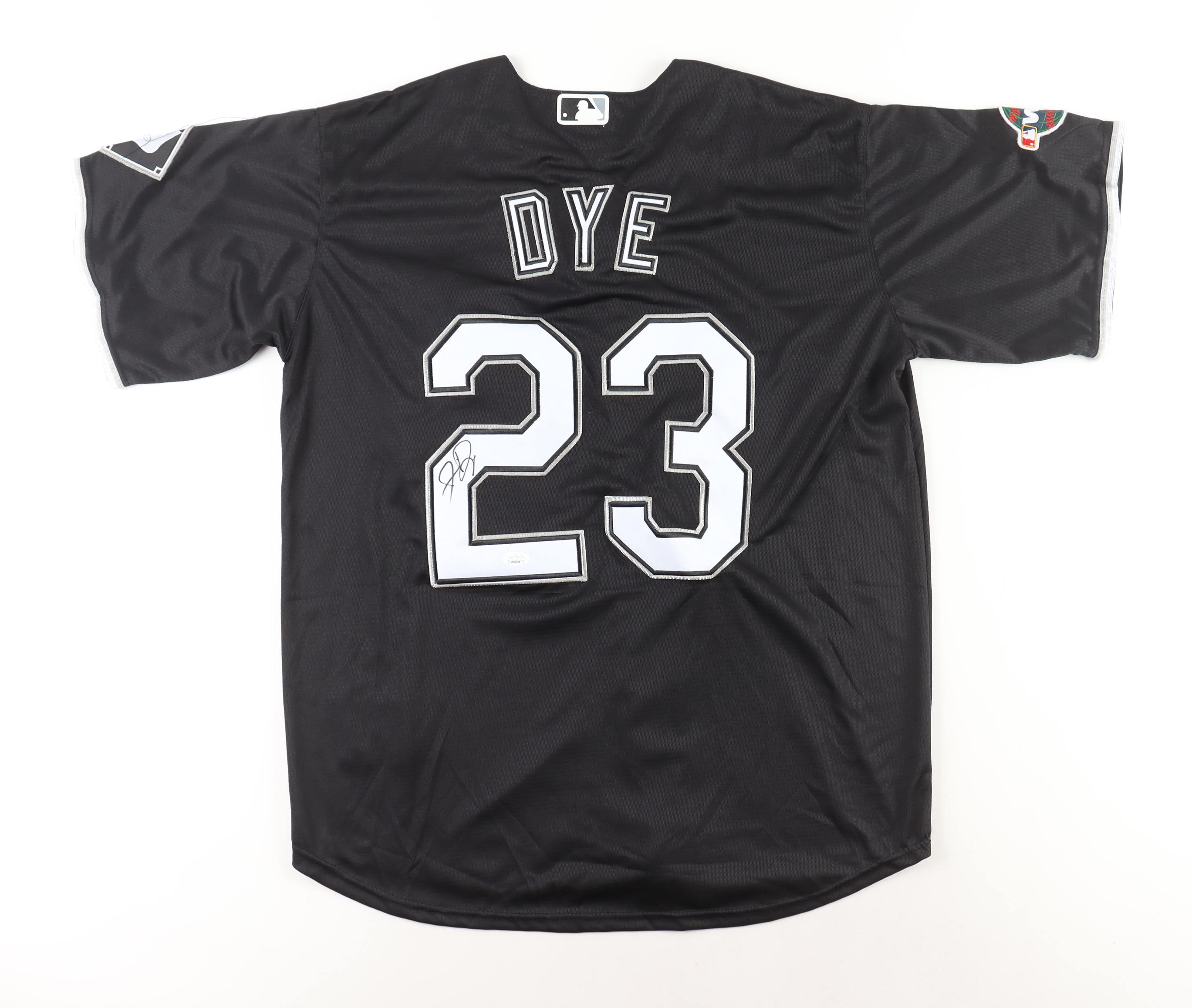 Majestic jersey with everything sewn on, size XL. Hand-signed by Jermaine Dye (Chicago White Sox).