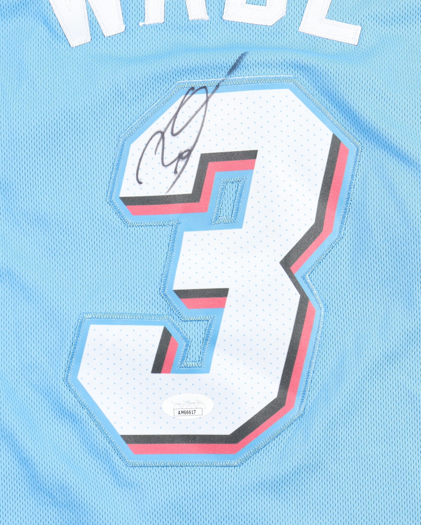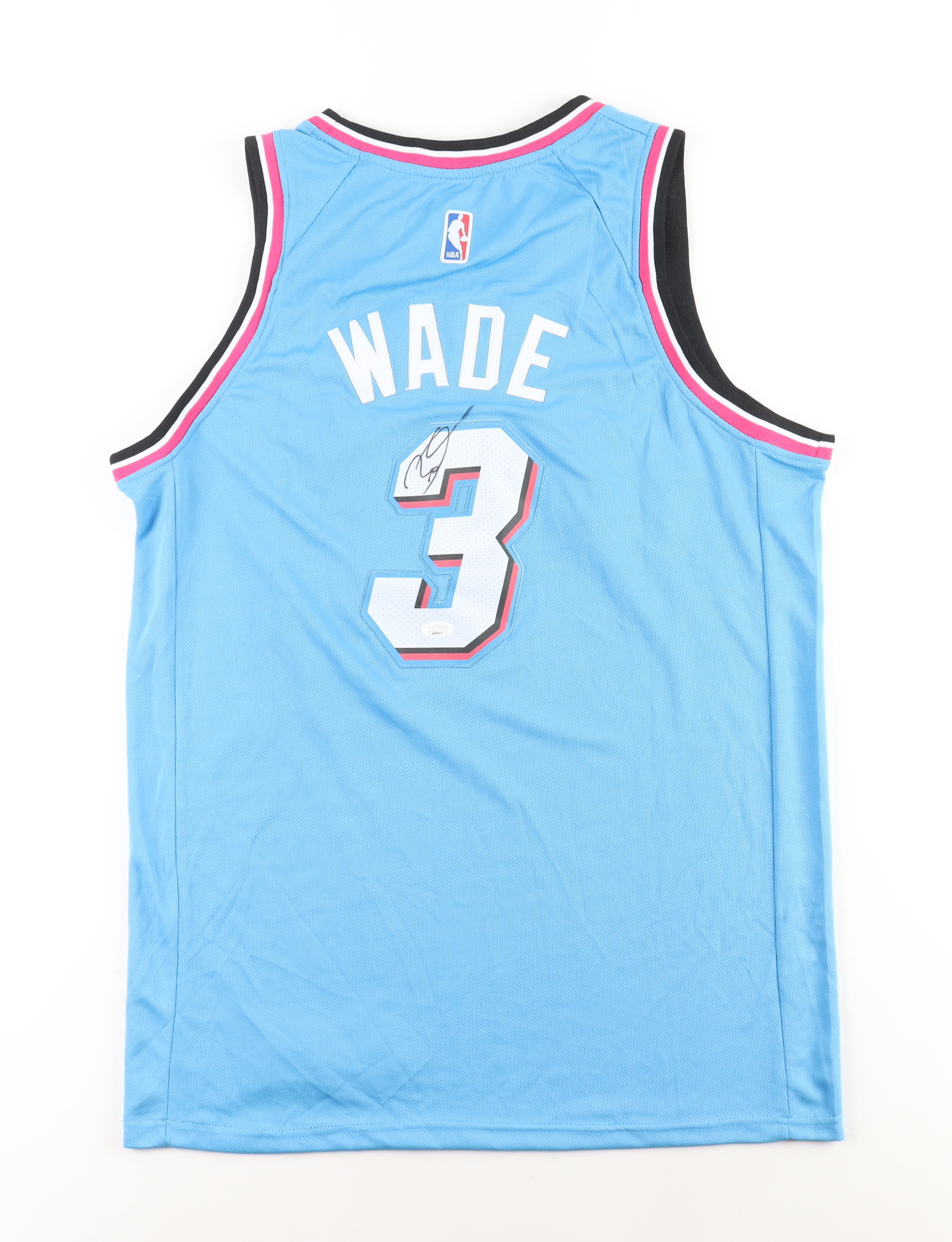 Nike jersey with everything sewn on, size 50. Hand-signed by Dwyane Wade (Miami Heat, HOF).