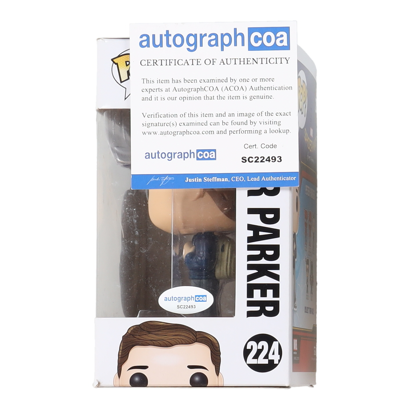 Tom Holland Signed "Spider-Man Homecoming" #224 Peter Parker Funko Pop! Vinyl Figure (ACOA)
