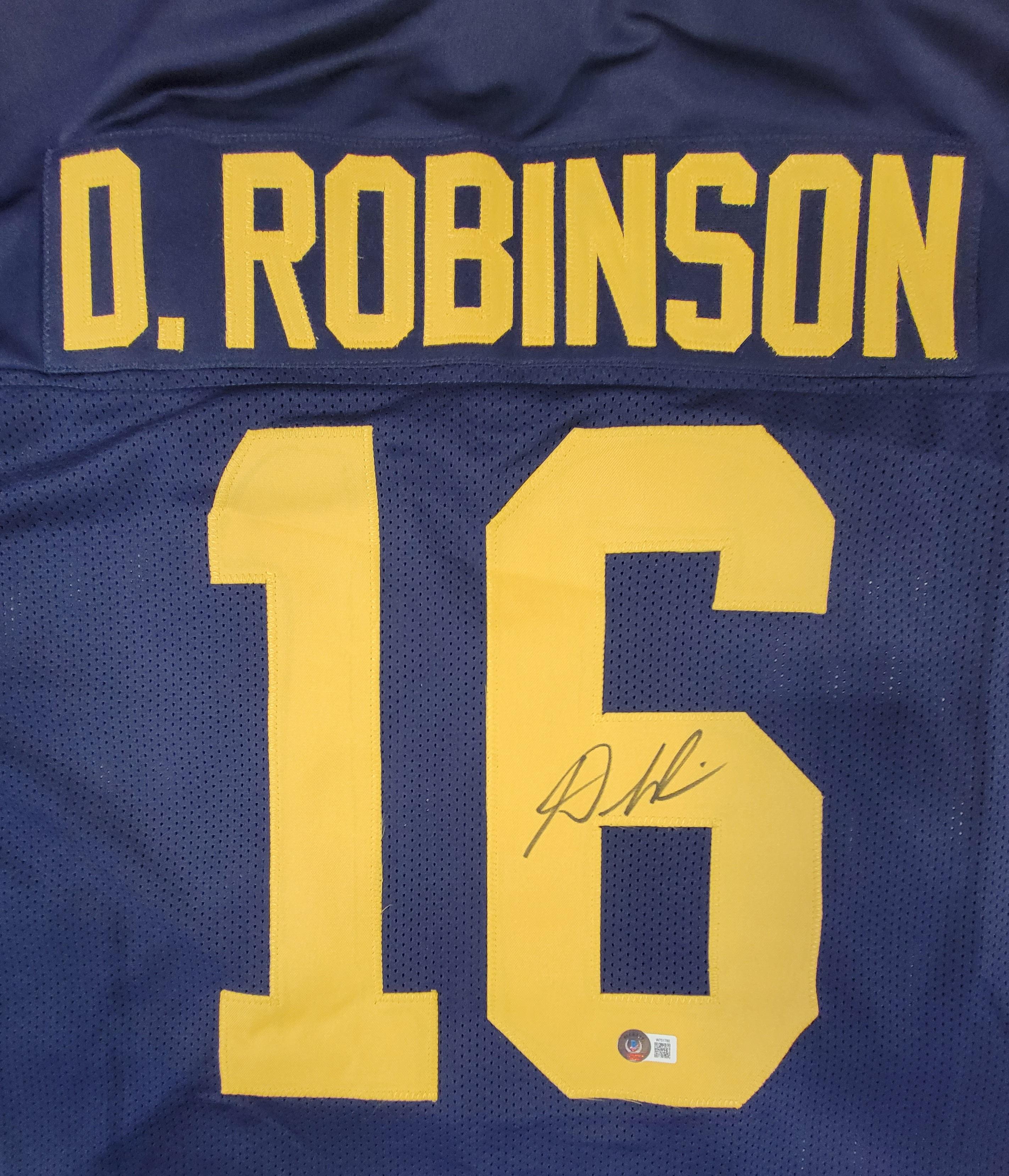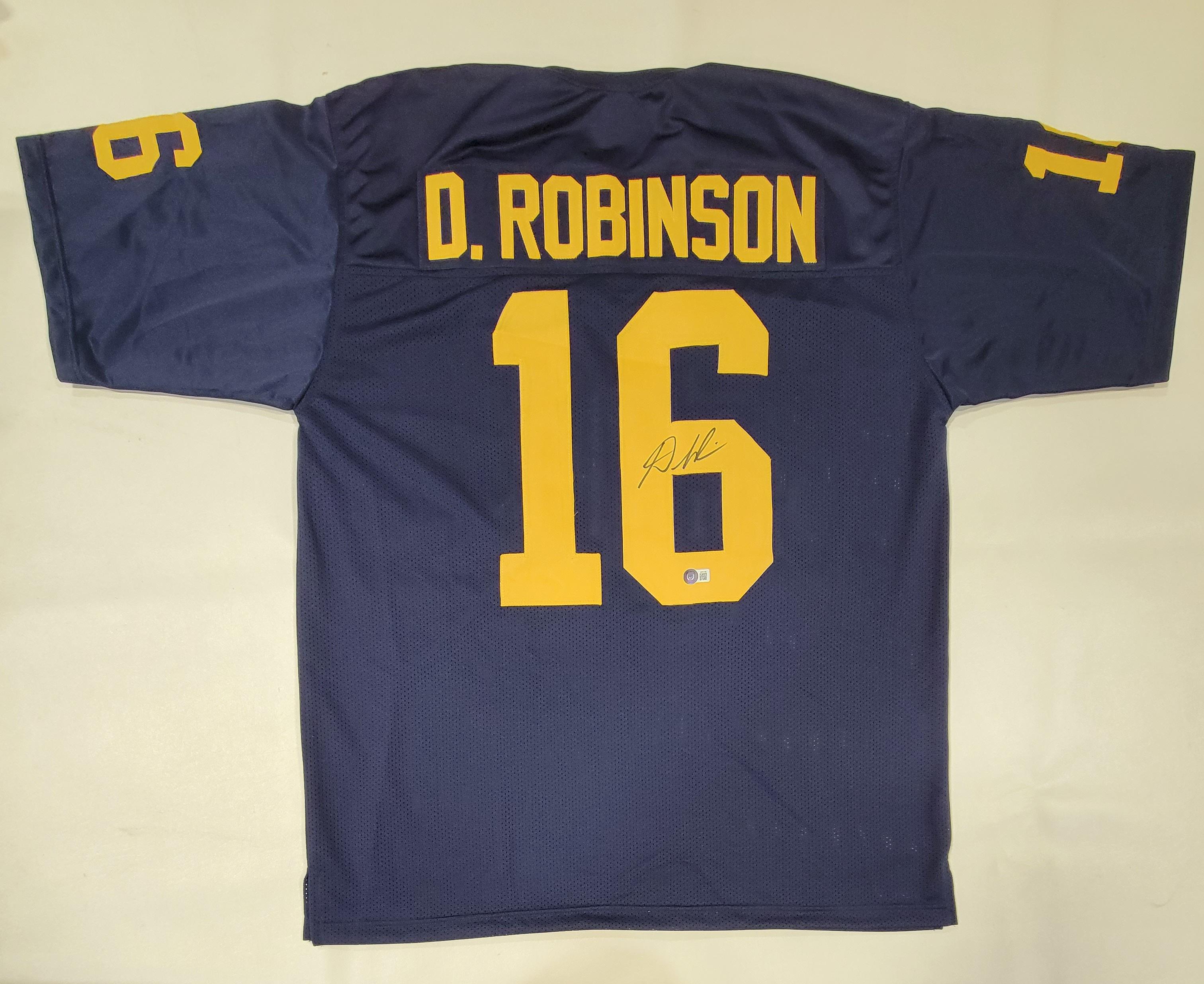 Custom jersey. Everything sewn on, size XL. Hand-signed by Denard Robinson.