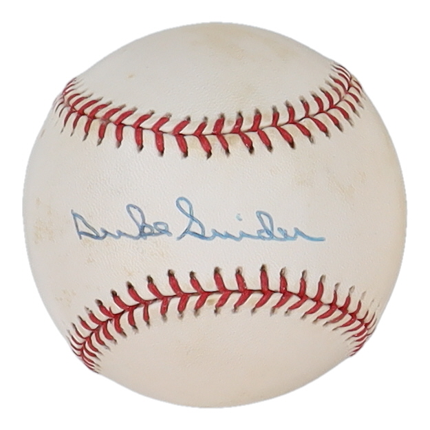 Rawlings Official National League baseball. Hand-signed by Duke Snider (D. 2011, Brooklyn Dodgers, HOF). Please note, the baseball is naturally toned.