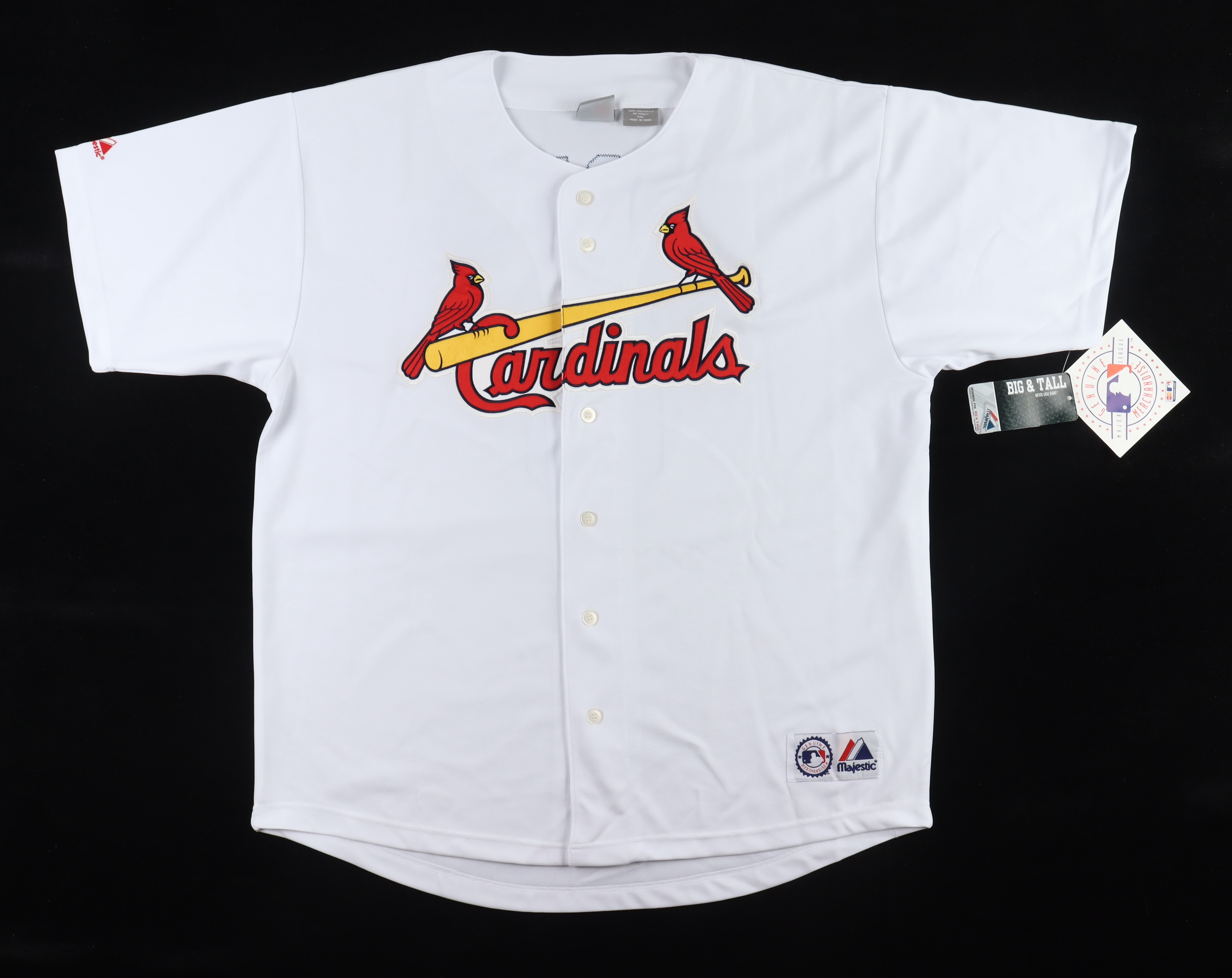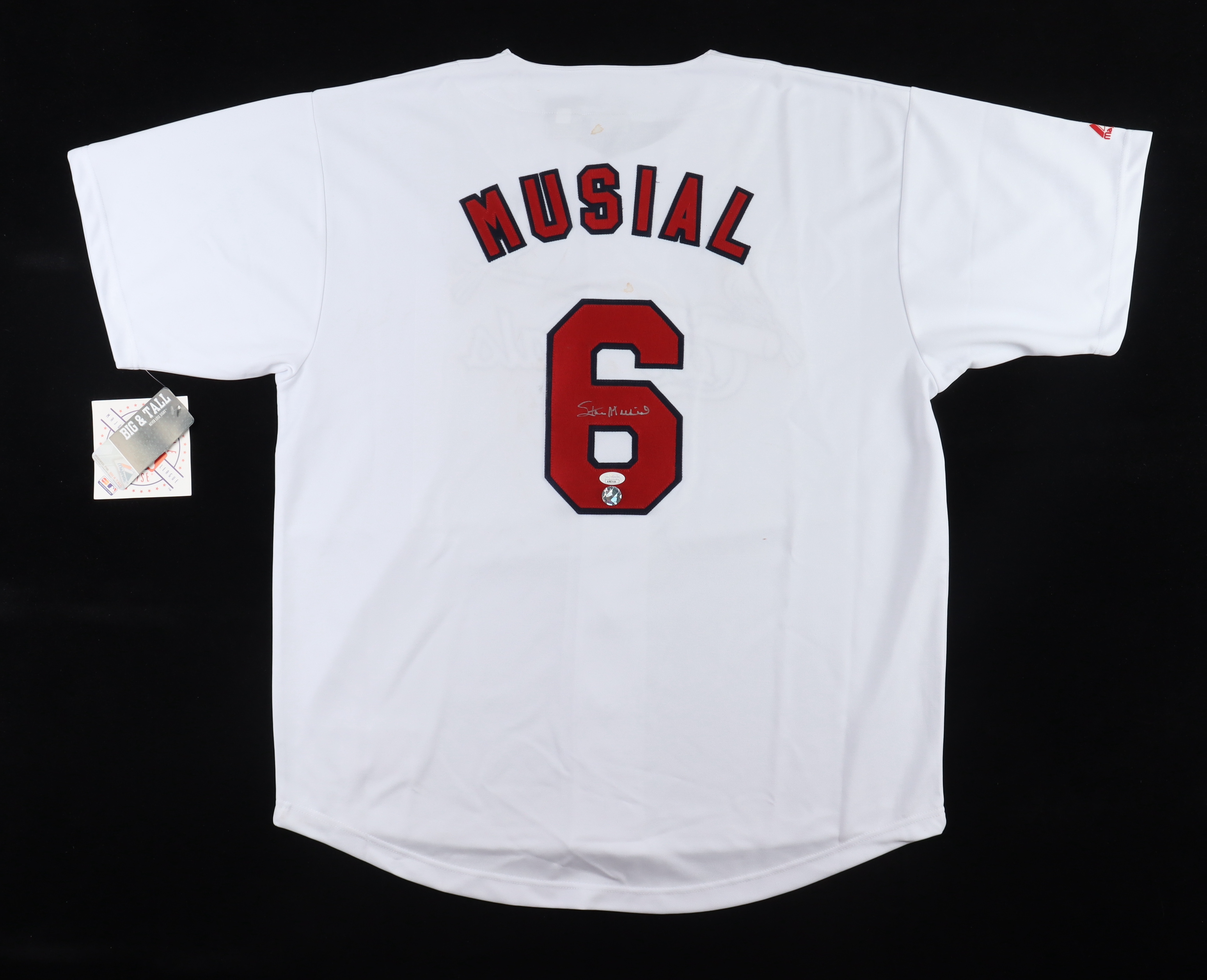 Majestic jersey with everything sewn on, size 2XL. Hand-signed by Stan Musial (D. 2013, St. Louis Cardinals, HOF).
