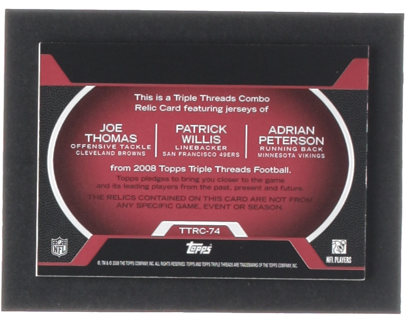 Adrian Peterson / Patrick Willis / Joe Thomas 2008 Topps Triple Threads Relic Combos Red #TTRC74 #06/22