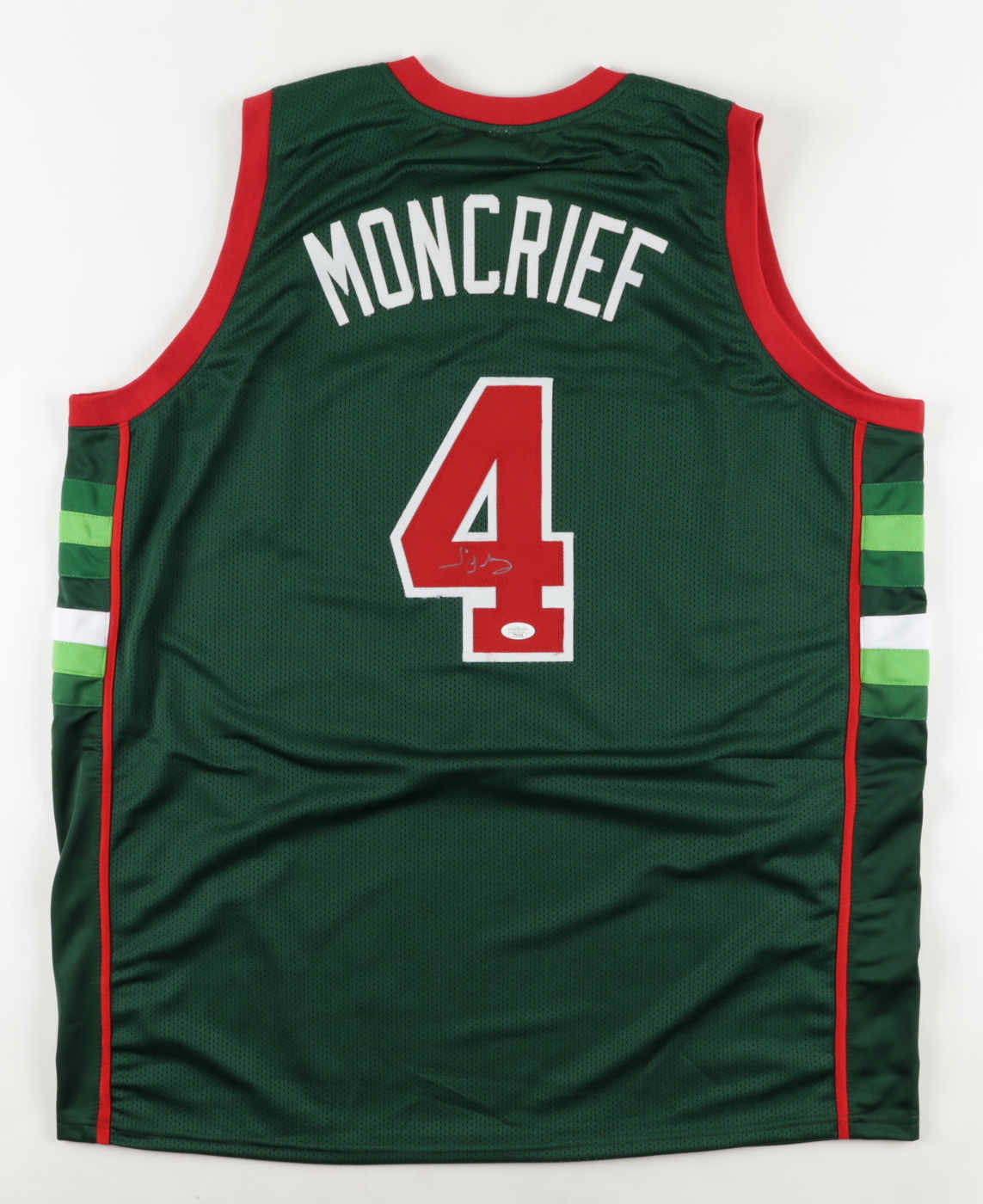 Custom jersey. Everything is sewn on, size XL. Has been hand-signed by Sidney Moncreif (HOF).