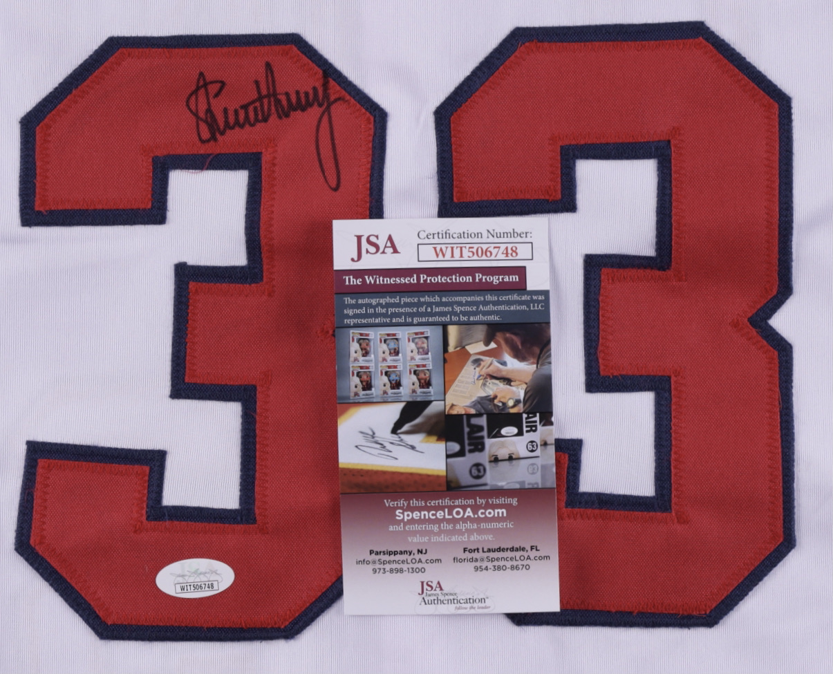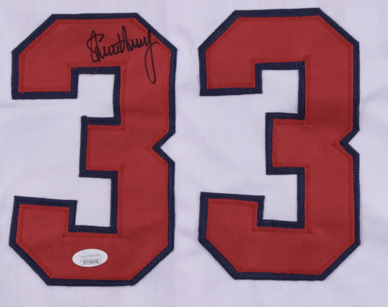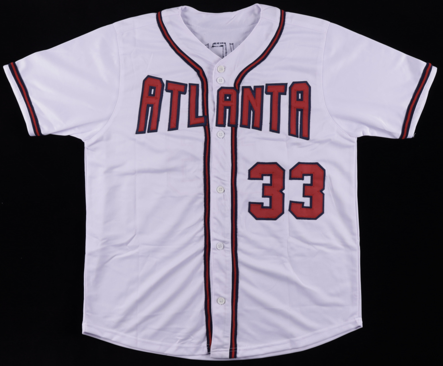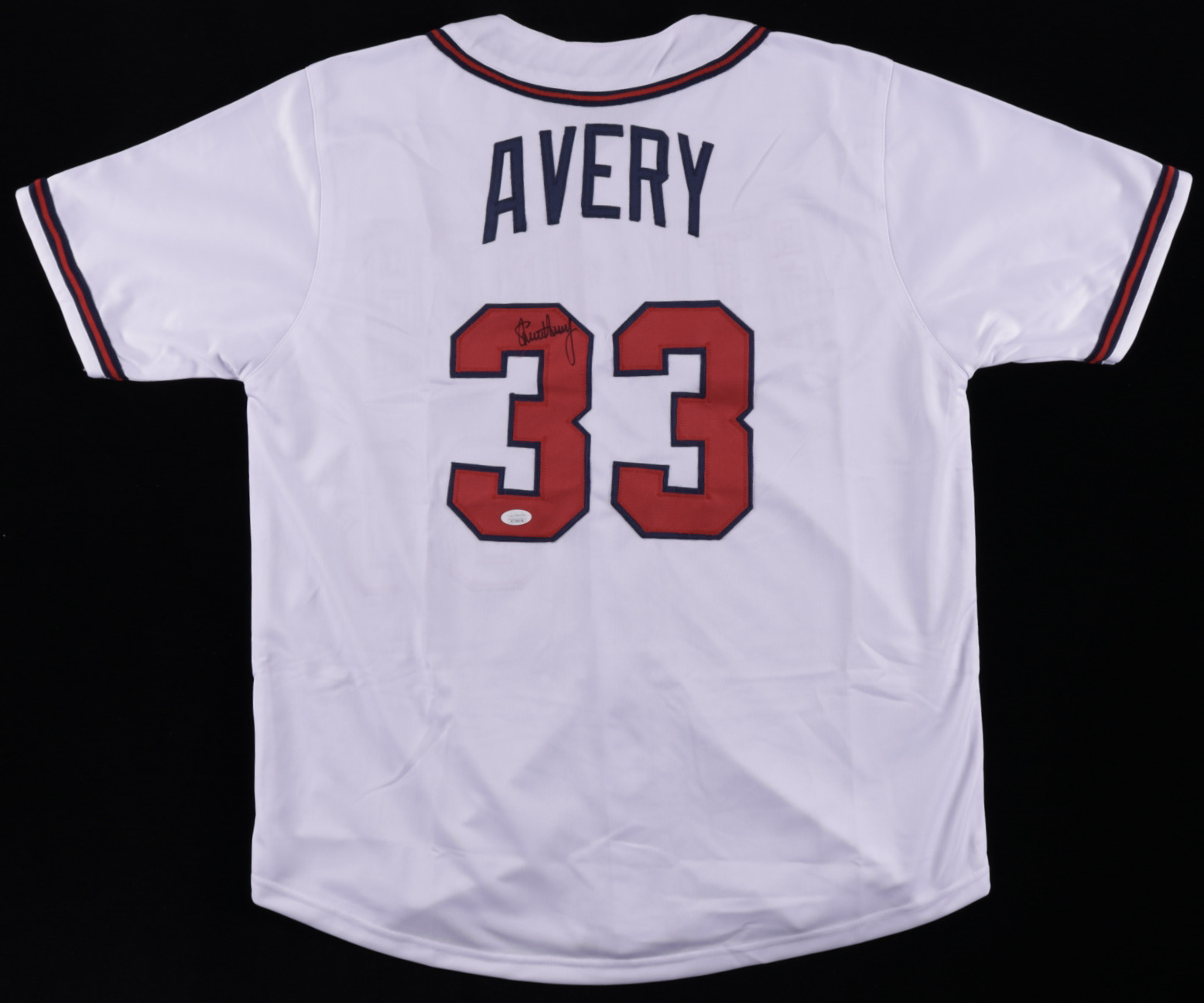 Custom jersey with everything sewn on, size XL. Has been hand-signed by Steve Avery.