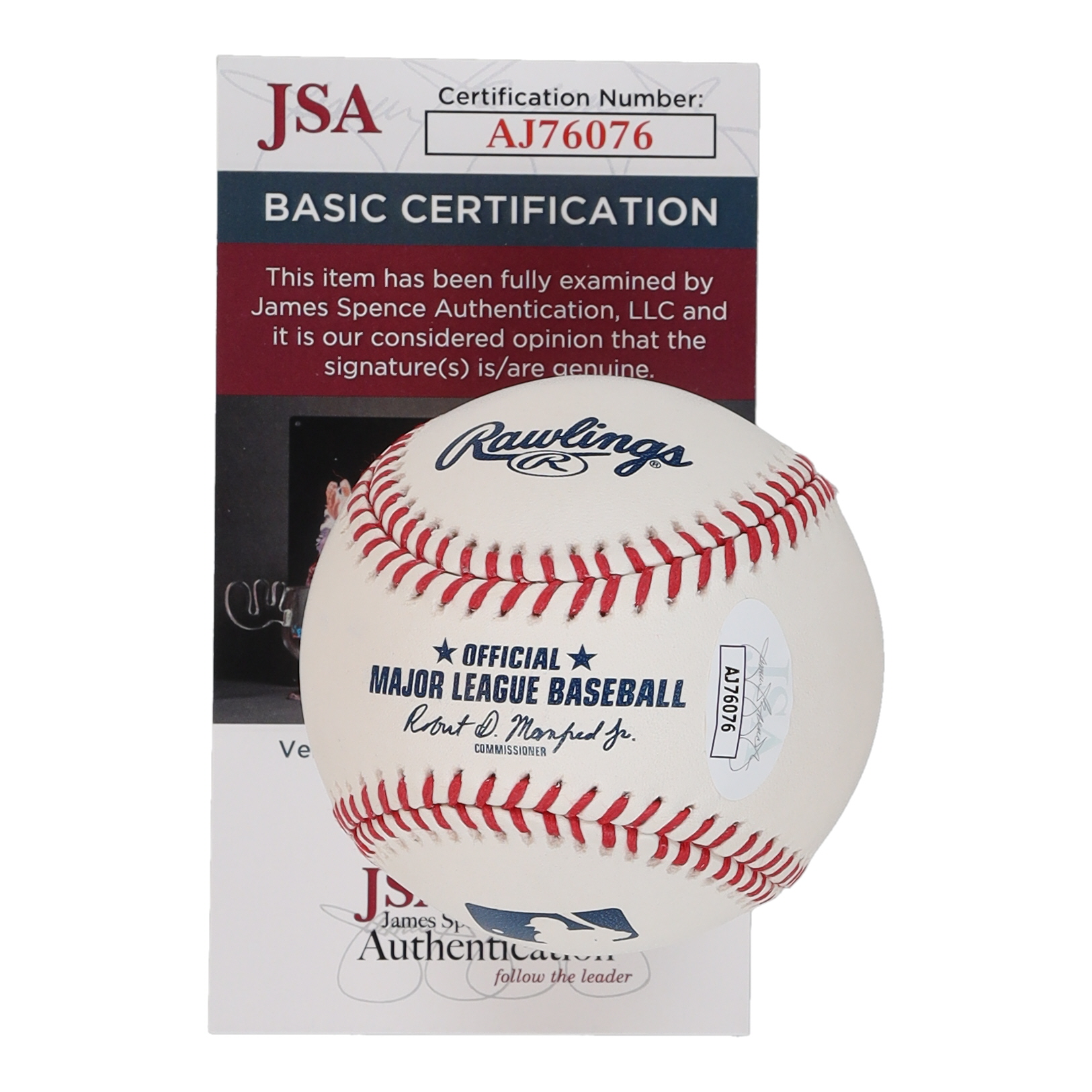The autograph includes an official James Spence Authentication (JSA) hologram and matching COA for authenticity purposes.