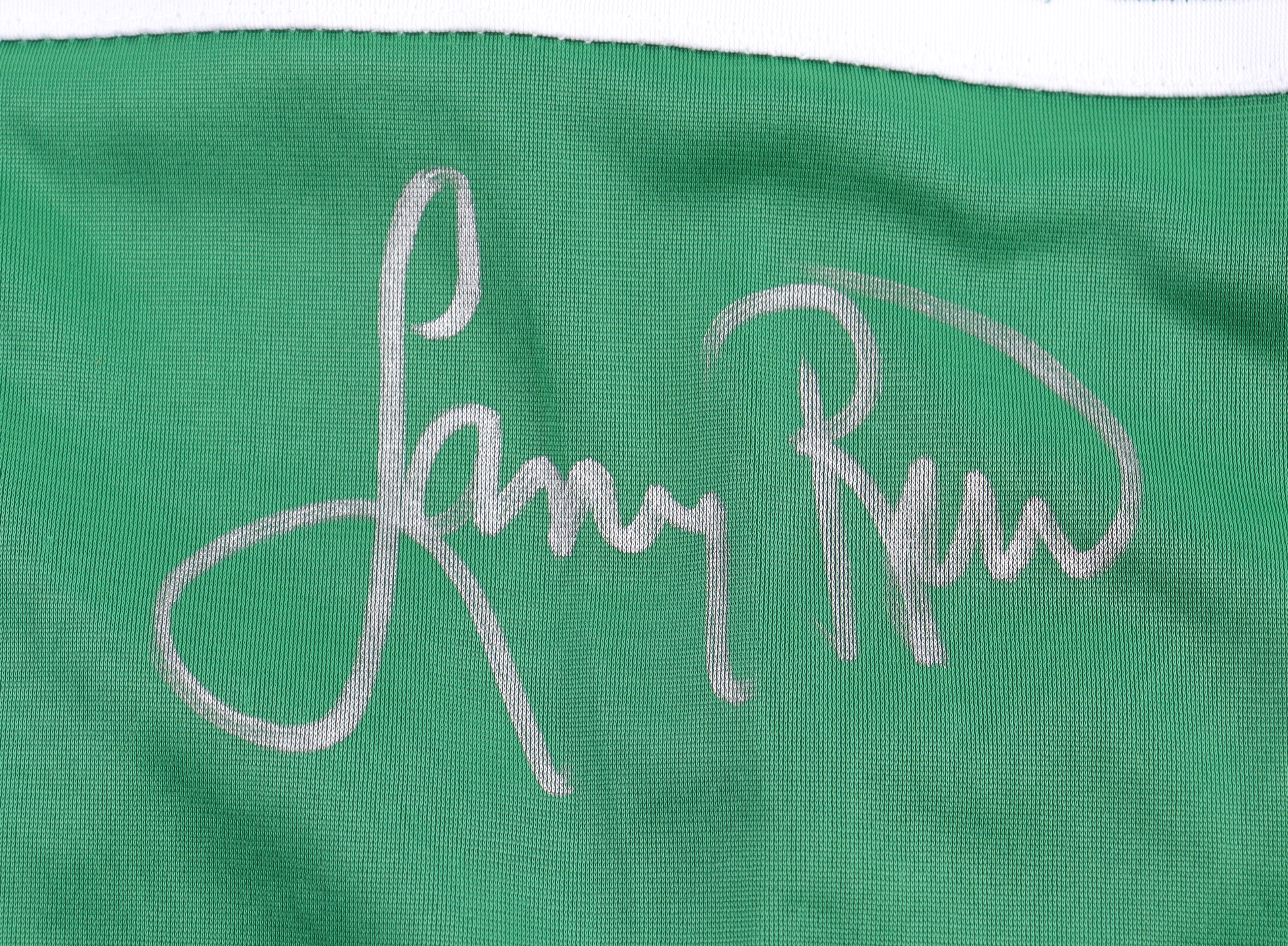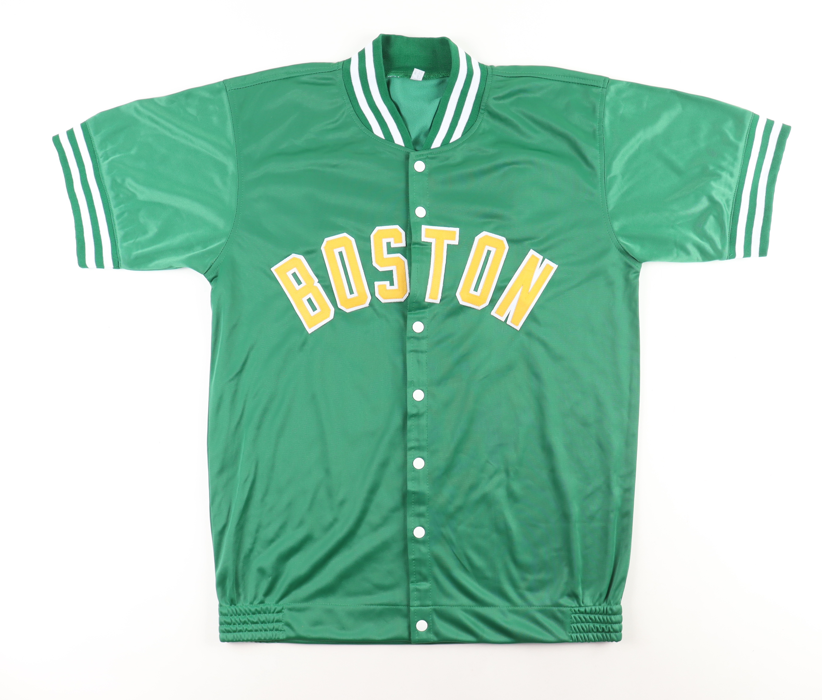 Custom jersey with everything sewn on, size XL. Hand-signed by Larry Bird (HOF).