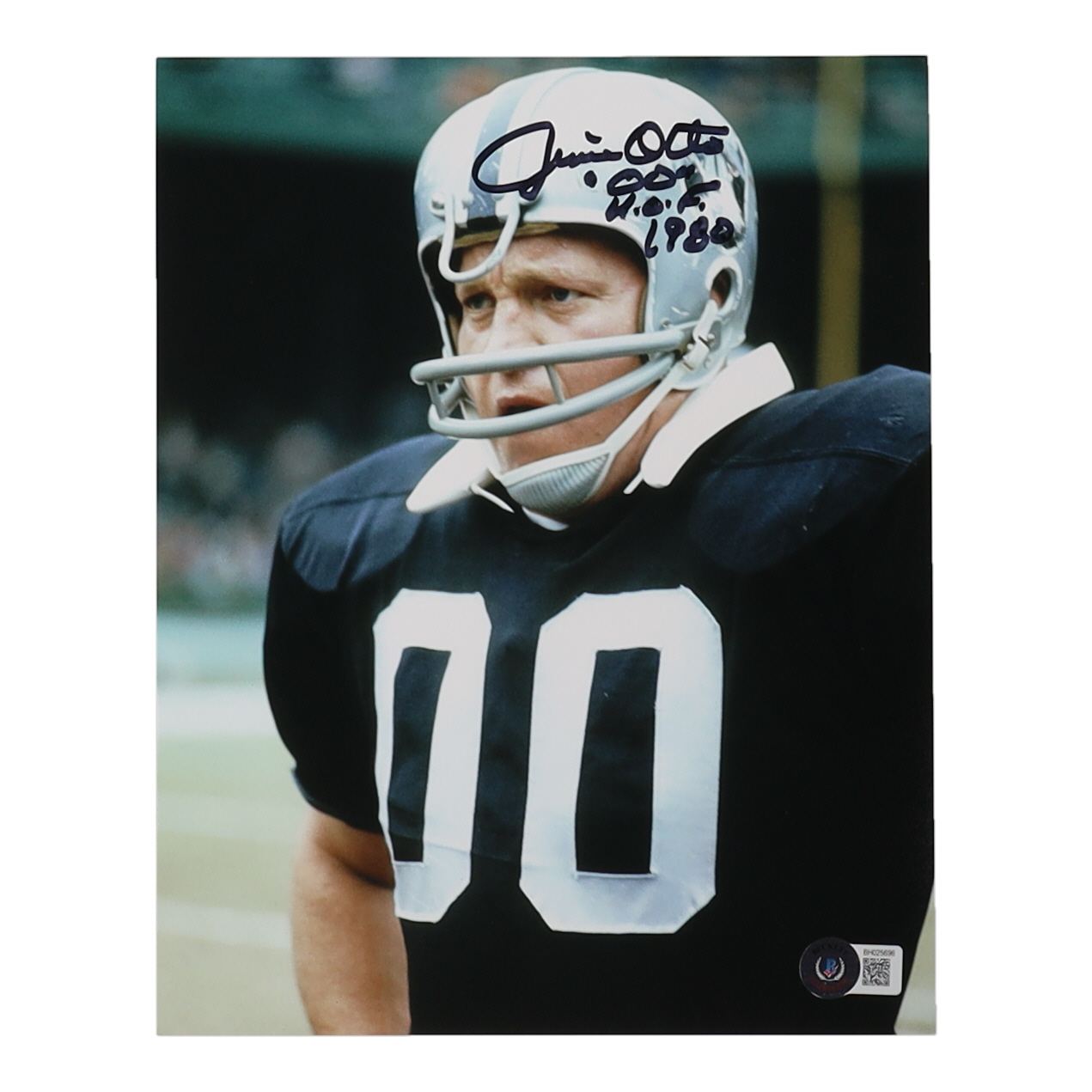 Photo measures approximately 8" x 10" in size and has been hand-signed and inscribed by Jim Otto (Oakland Raiders, HOF).