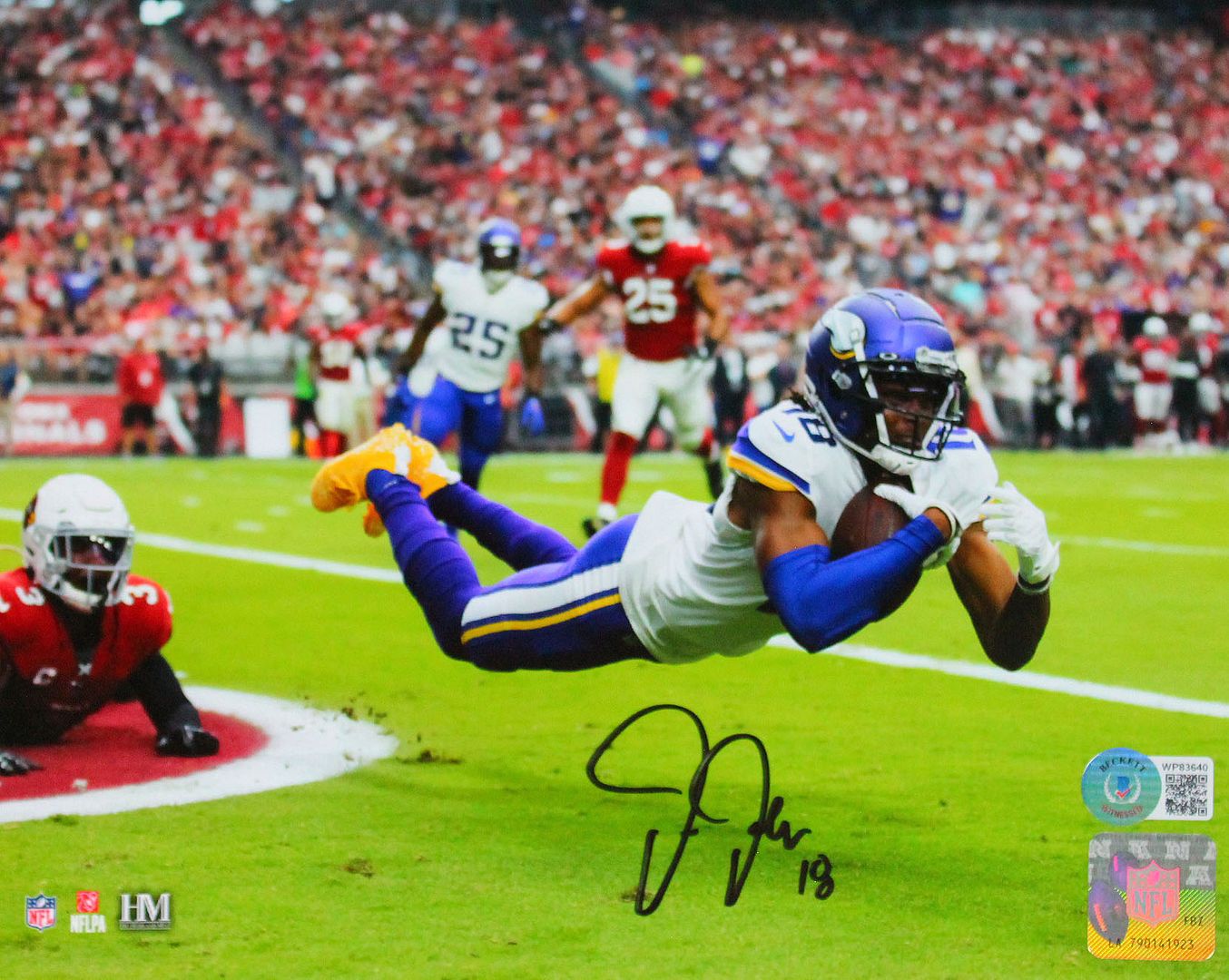 Photo measures 8" x 10" in size and has been hand-signed by Justin Jefferson (Minnesota Vikings).